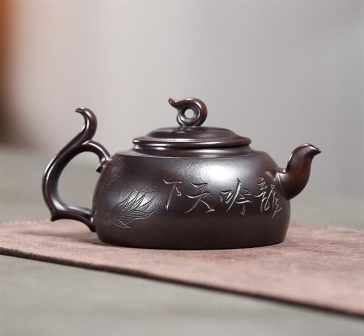 310cc礦鐵龍山古烏泥醉月茶壺POT9176