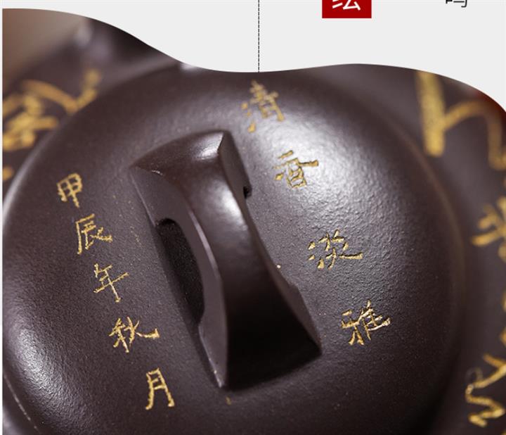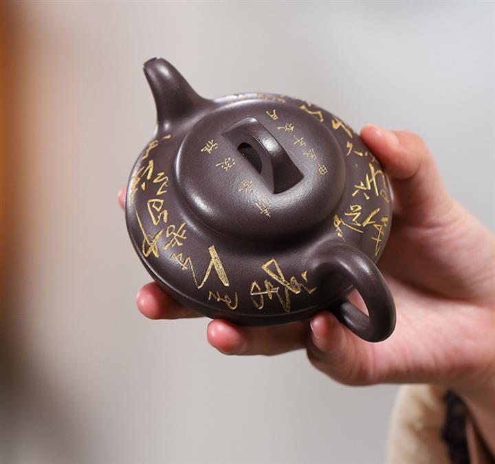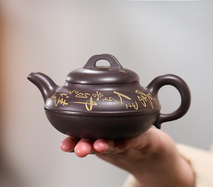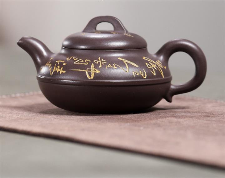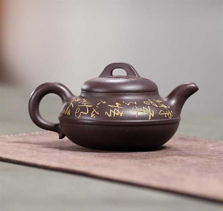 原礦綠泥刻繪漢瓦紫砂壺POT5438