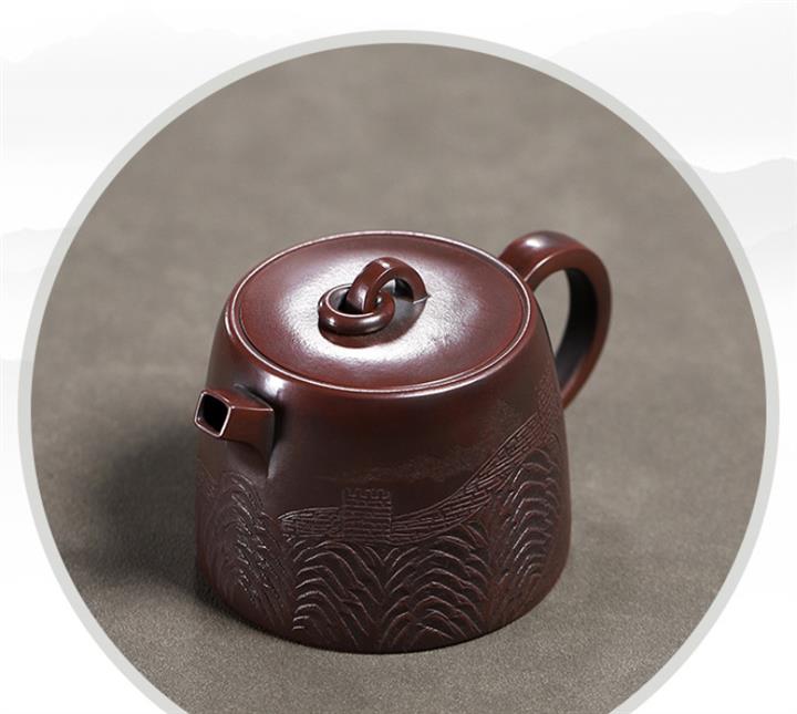 260cc原礦龍山古烏泥長城井欄茶壺POT9179