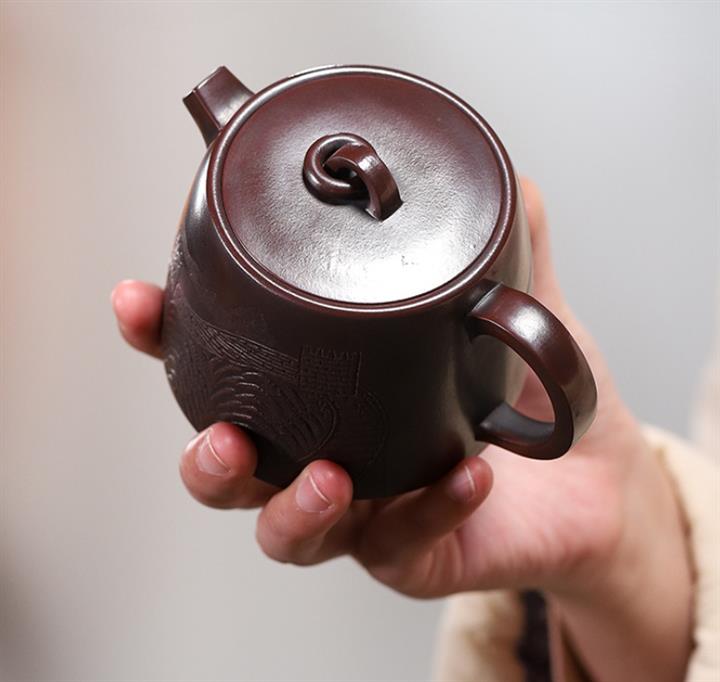 【作品介紹】此款壺形線條流暢,壺把,壺嘴,壺身壹氣呵成栩栩如生,是收藏把玩的好壺,泥料色澤古樸典雅,日久使用,漸露鋒芒,養成變化快,溫潤莊重,用其泡茶,使用的年代久,壺身就溫潤,泡出來的茶湯也就醇郁芳馨。