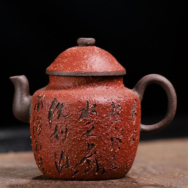 110cc老巖泥滿山紅赭石釉小醜宮燈茶壺POT9187