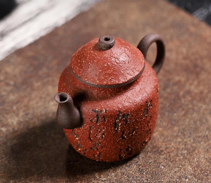 110cc老巖泥滿山紅赭石釉小醜宮燈茶壺POT9187