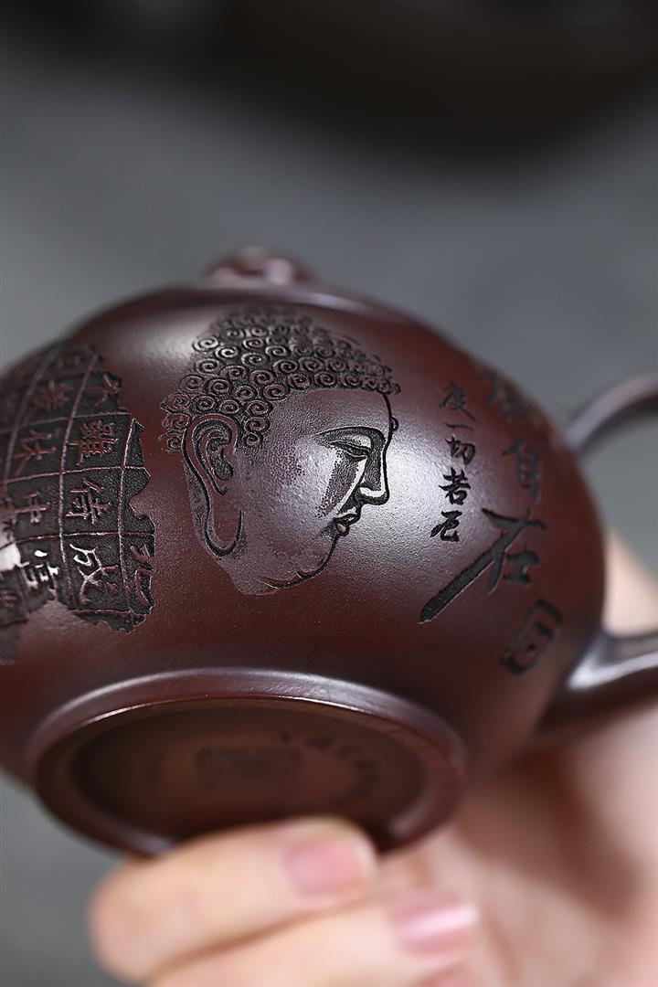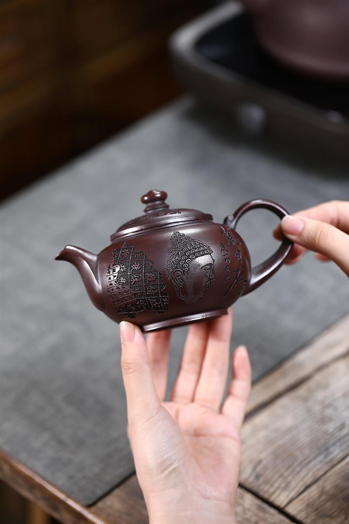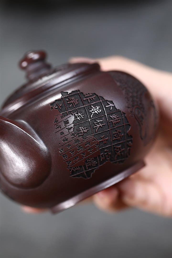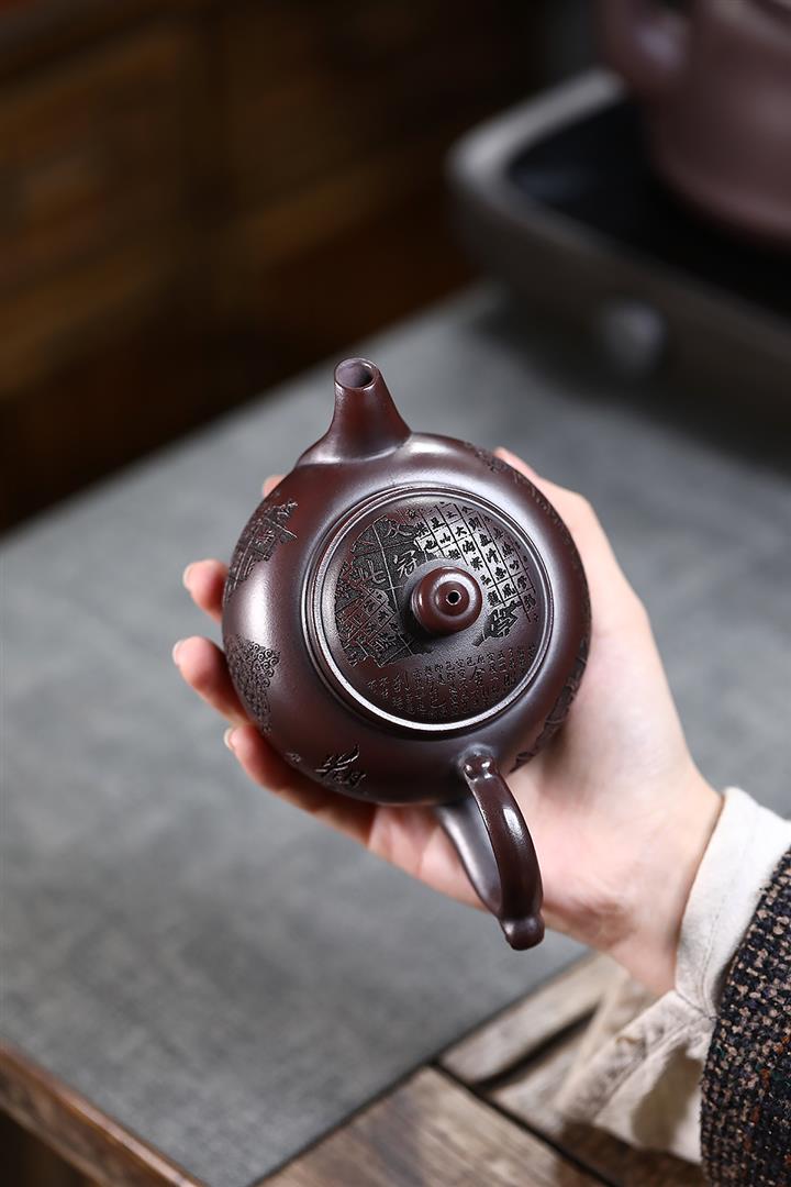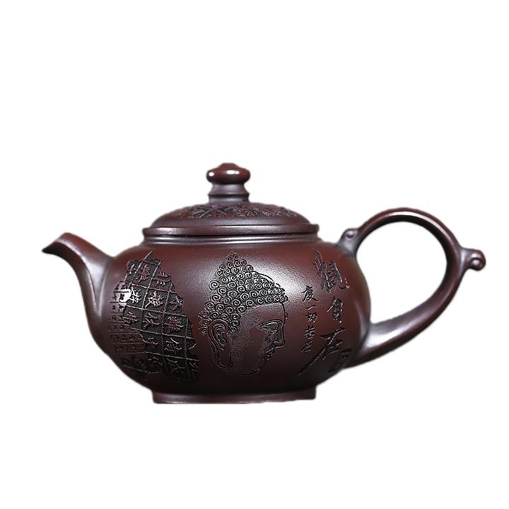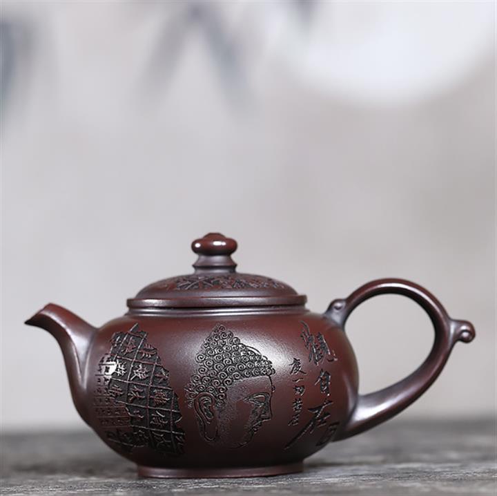 280cc原礦古烏泥刻繪般若禪韻飛把茶壺POT9197