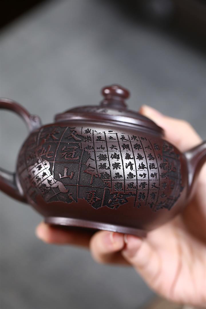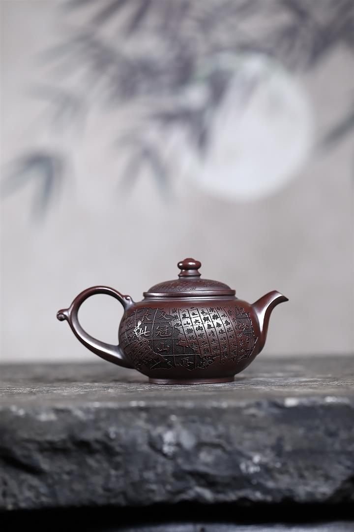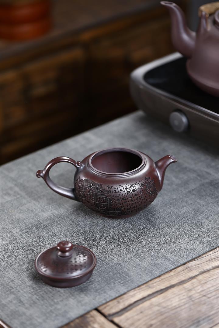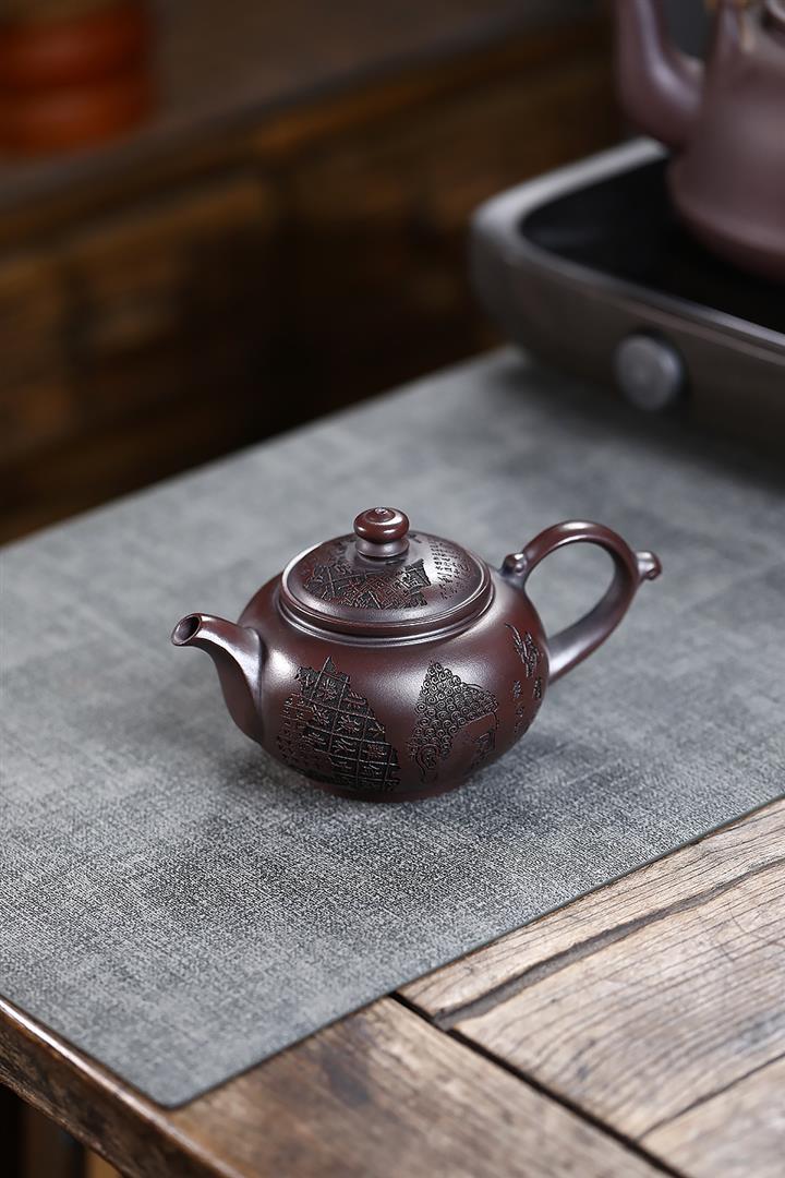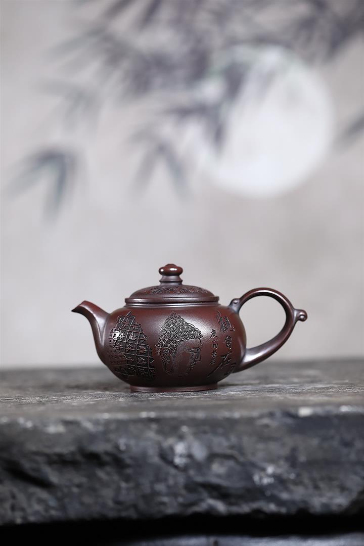 280cc原礦古烏泥刻繪般若禪韻飛把茶壺POT9197