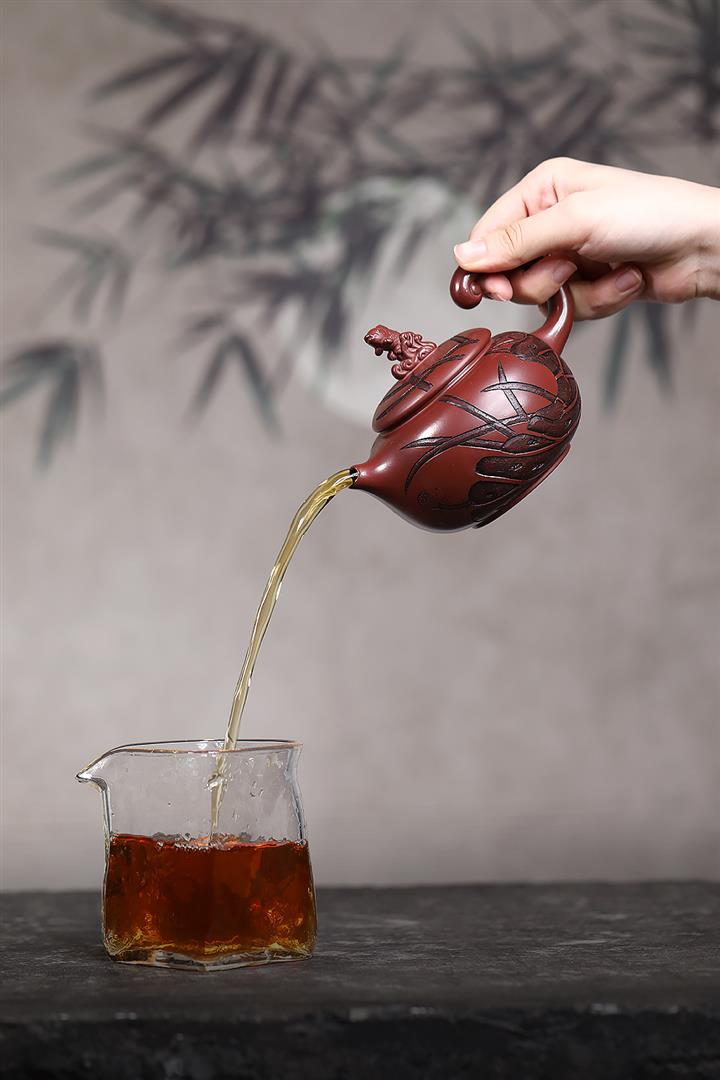 原礦紫泥竹韻聽風竹影茶壺POT7308