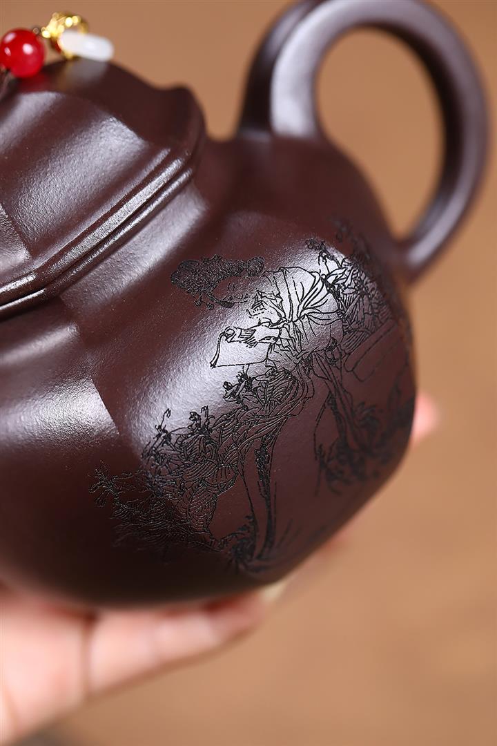 【作品介紹】此款壺形線條流暢,壺把,壺嘴,壺身壹氣呵成栩栩如生,是收藏把玩的好壺,泥料色澤古樸典雅,日久使用,漸露鋒芒,養成變化快,溫潤莊重,用其泡茶,使用的年代久,壺身就溫潤,泡出來的茶湯也就醇郁芳馨。