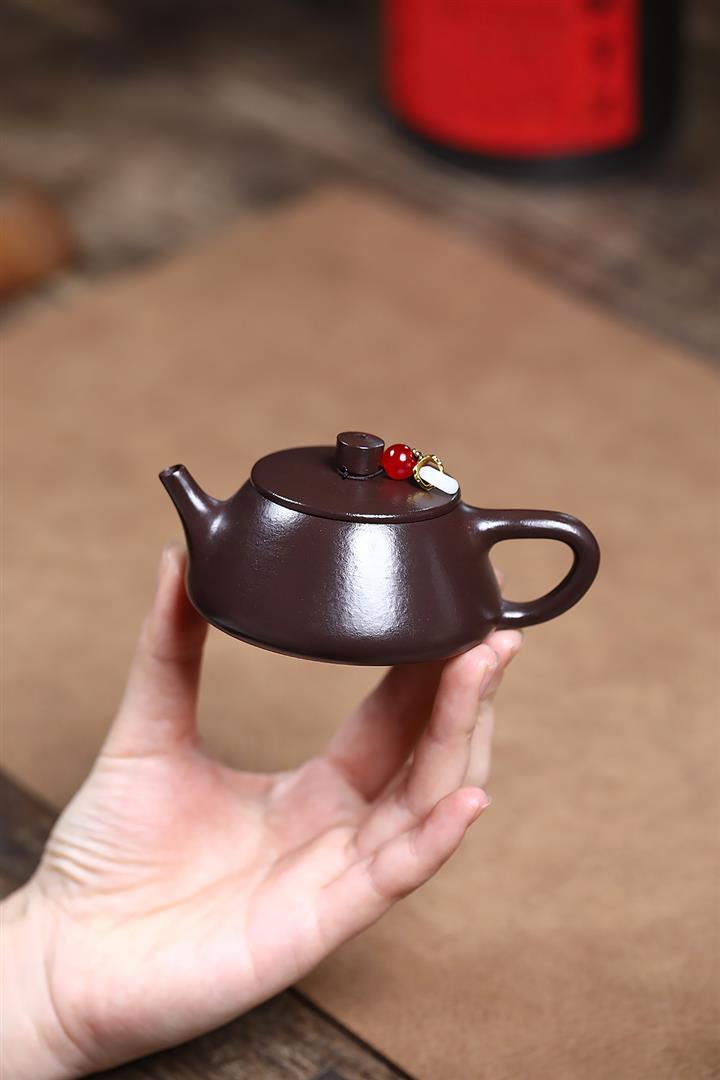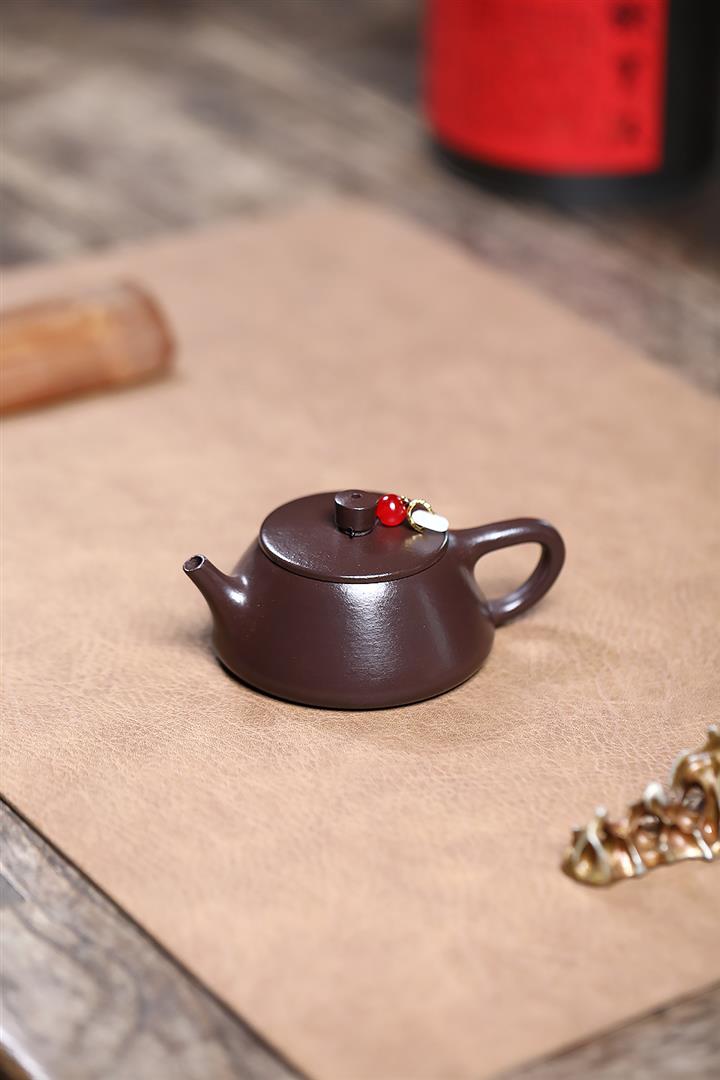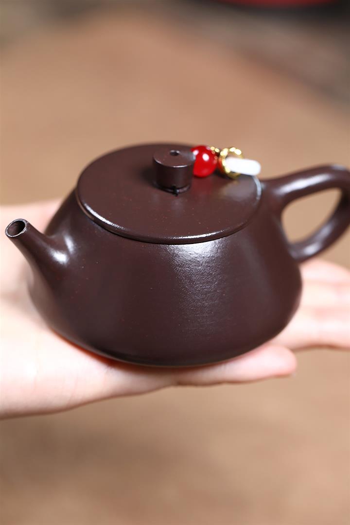 紫砂壺稀有龍血砂石瓢壺純手工刻繪POT3922
