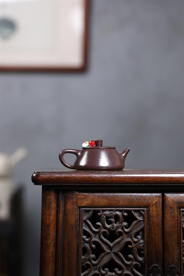 【泥料特點】砂土氣重,似淳實農民,日久使用,漸露鋒芒,養成變化,溫潤莊重。紫砂是壹種雙重氣孔結構的多孔性材質,氣孔微細,密度高。用紫砂壺沏茶,不失原味,且香不渙散,得茶之真香真味。紫砂使用越久,壺身色澤越發光亮照人,氣韻溫雅。紫砂壺長久使用器身會因撫摸擦拭,變得越發溫潤光澤。