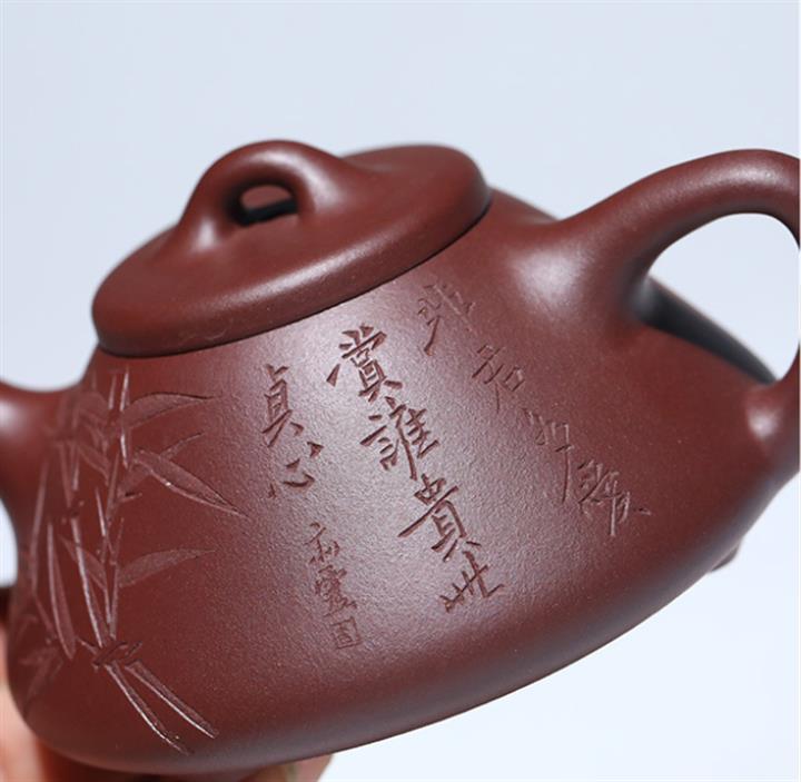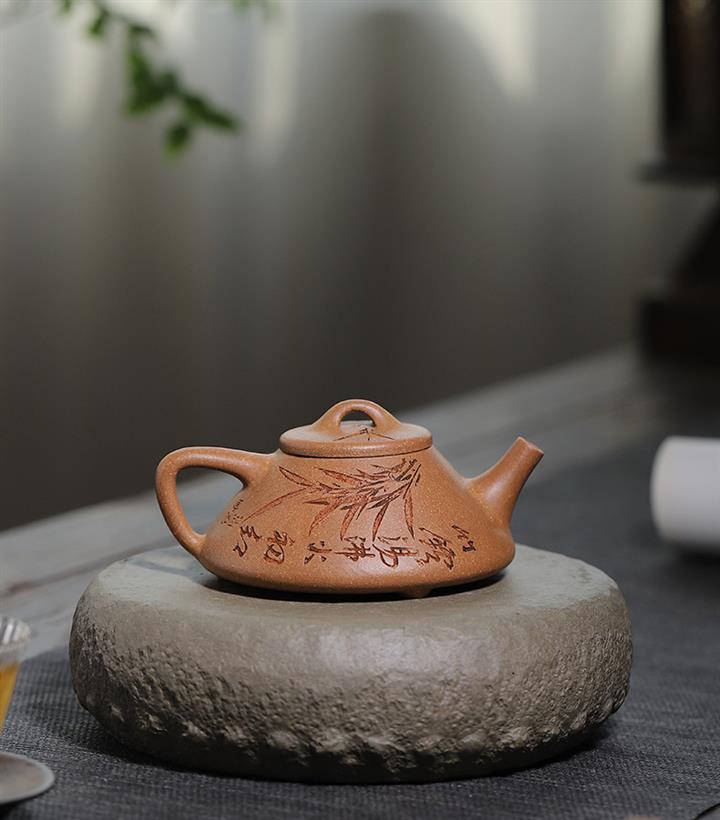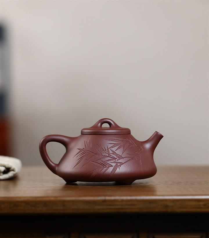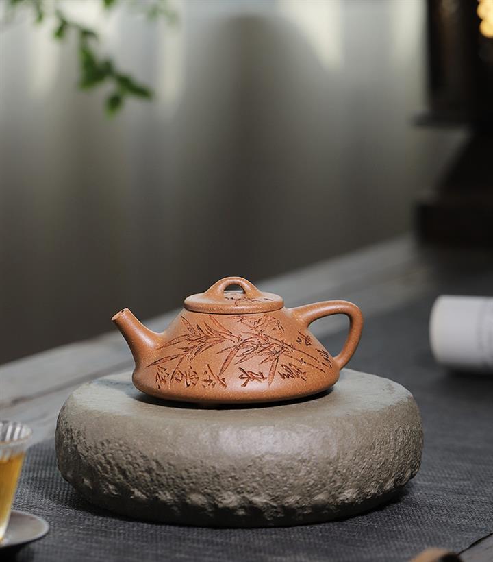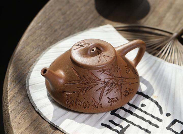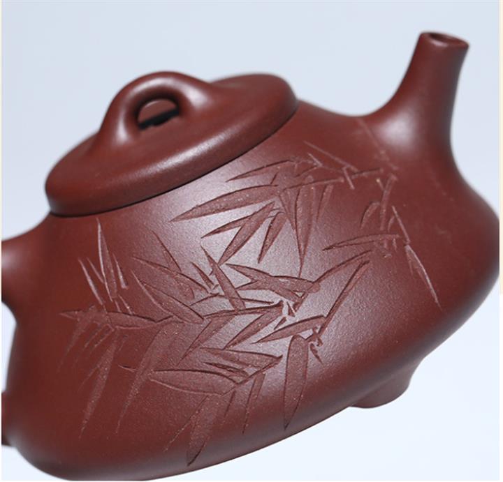 170cc/190cc原礦降坡泥/紫泥陶刻竹葉子冶石瓢茶壺POT9228