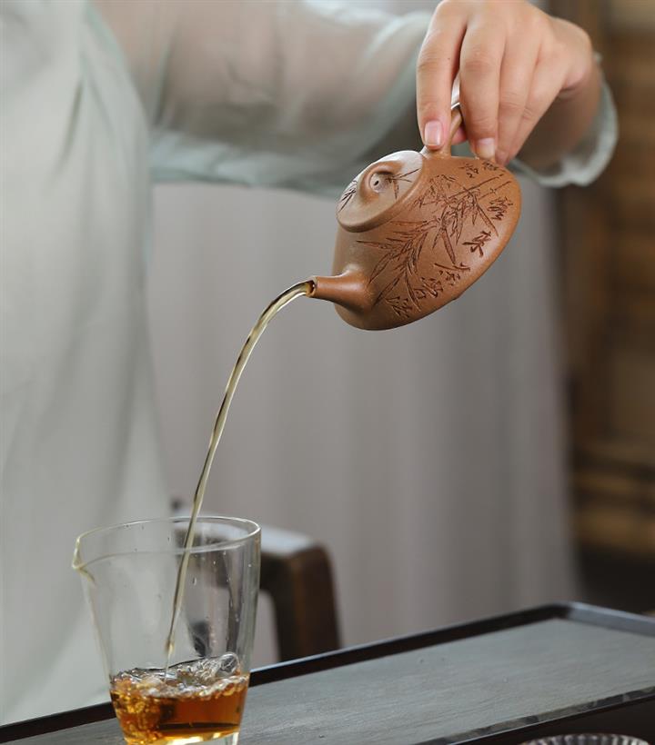 【泥料特點】砂土氣重,似淳實農民,日久使用,漸露鋒芒,養成變化,溫潤莊重。紫砂是壹種雙重氣孔結構的多孔性材質,氣孔微細,密度高。用紫砂壺沏茶,不失原味,且香不渙散,得茶之真香真味。紫砂使用越久,壺身色澤越發光亮照人,氣韻溫雅。紫砂壺長久使用器身會因撫摸擦拭,變得越發溫潤光澤。