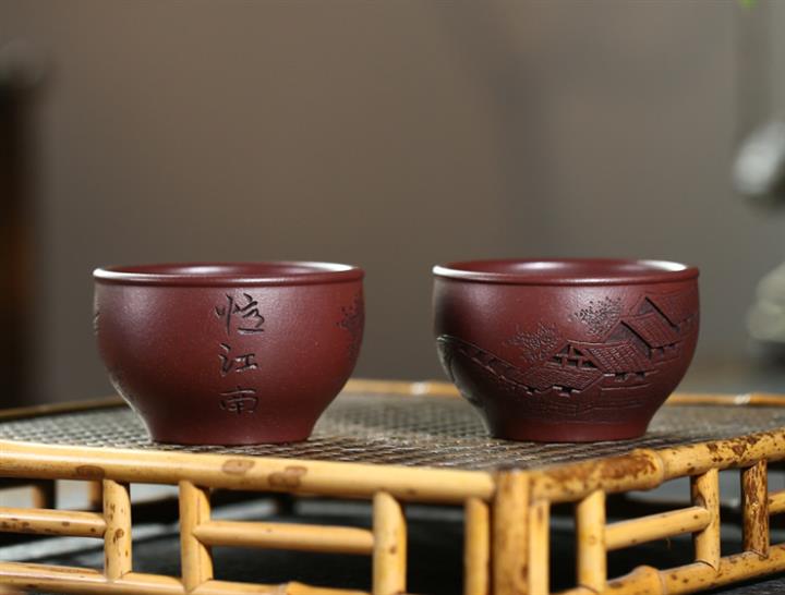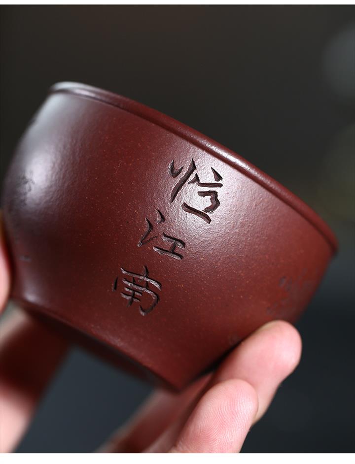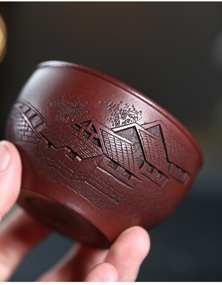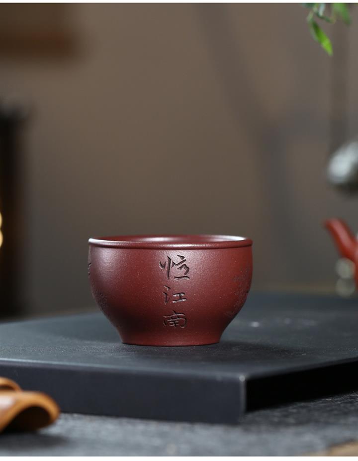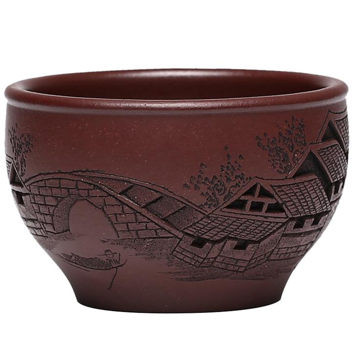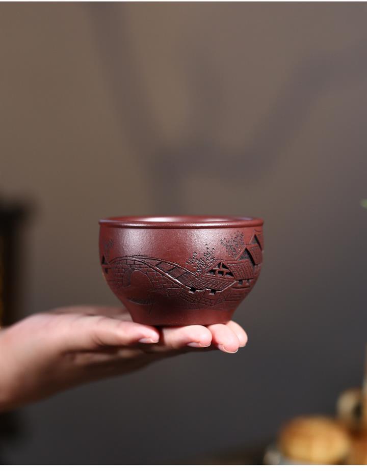 120cc原礦紫泥全手工鏤刻憶江南主人杯POT9249