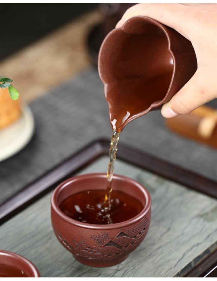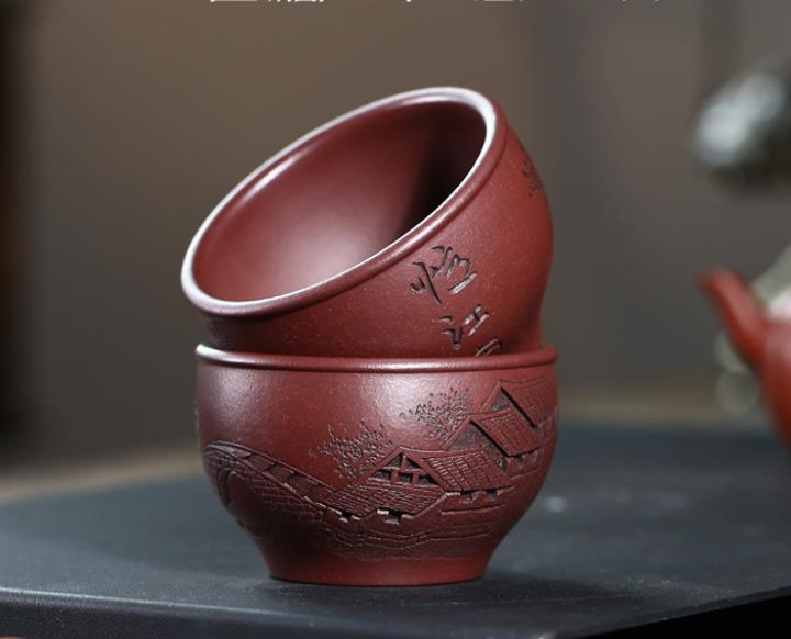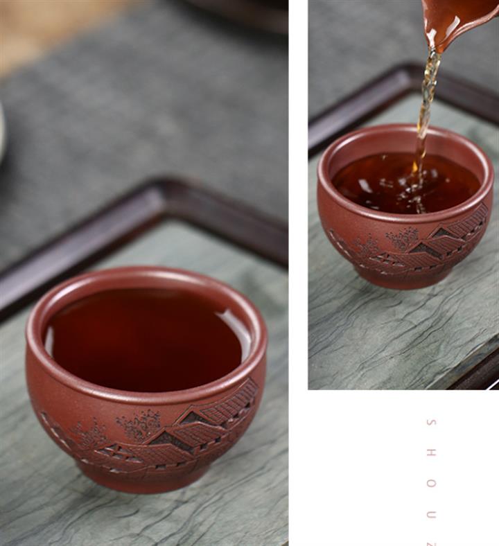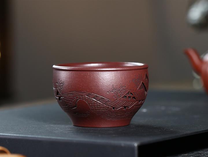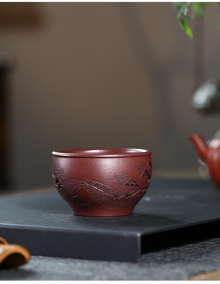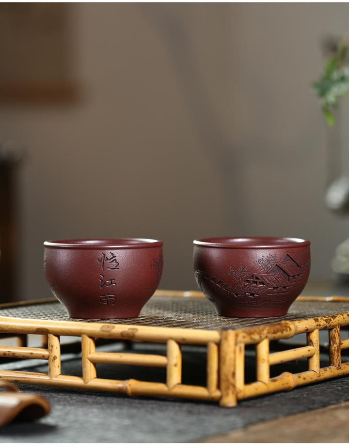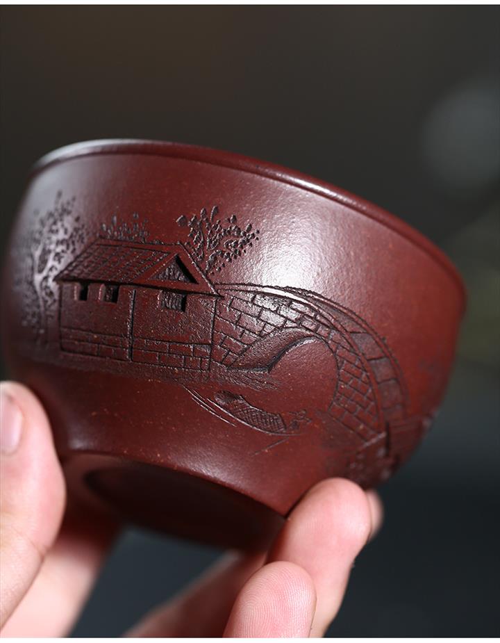 120cc原礦紫泥全手工鏤刻憶江南主人杯POT9249