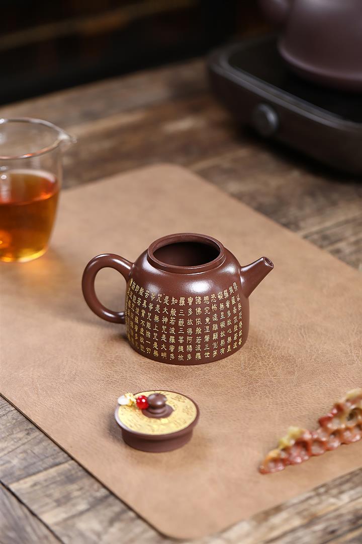 200cc原礦紫朱泥描金漢瓦茶壺POT8468