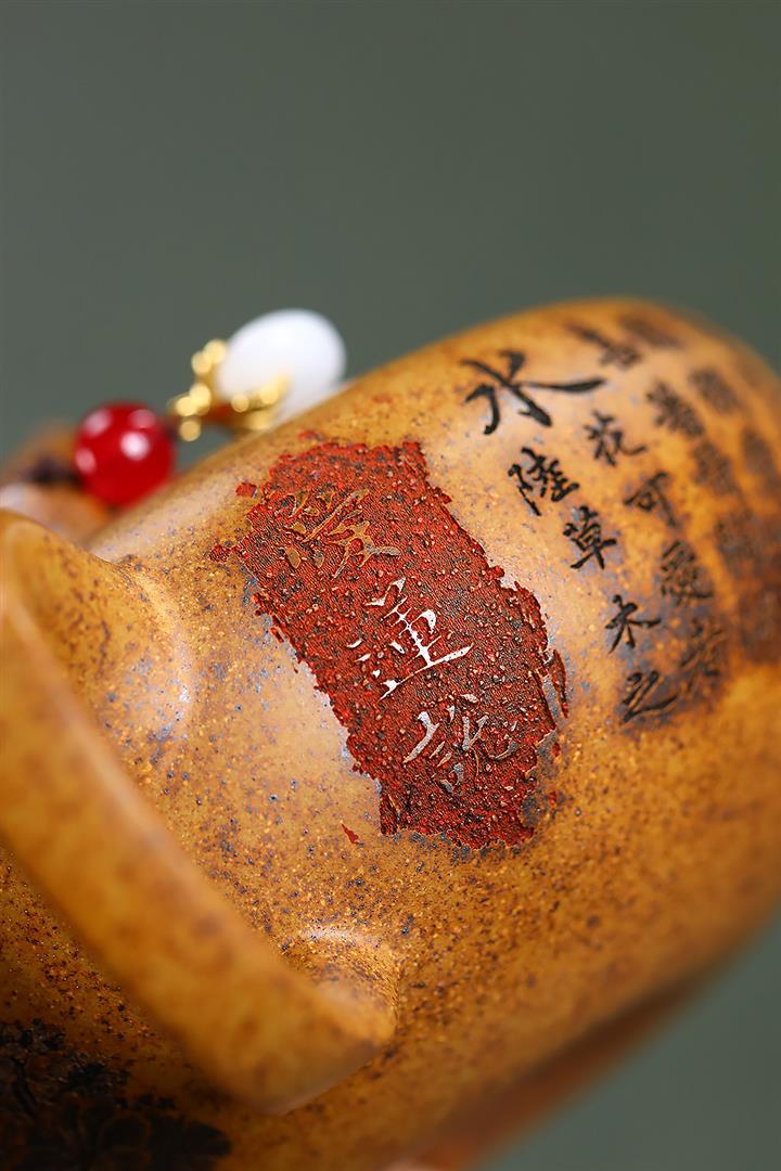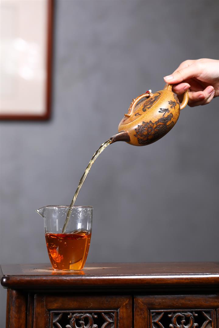 【泥料特點】砂土氣重,似淳實農民,日久使用,漸露鋒芒,養成變化,溫潤莊重。紫砂是壹種雙重氣孔結構的多孔性材質,氣孔微細,密度高。用紫砂壺沏茶,不失原味,且香不渙散,得茶之真香真味。紫砂使用越久,壺身色澤越發光亮照人,氣韻溫雅。紫砂壺長久使用器身會因撫摸擦拭,變得越發溫潤光澤。