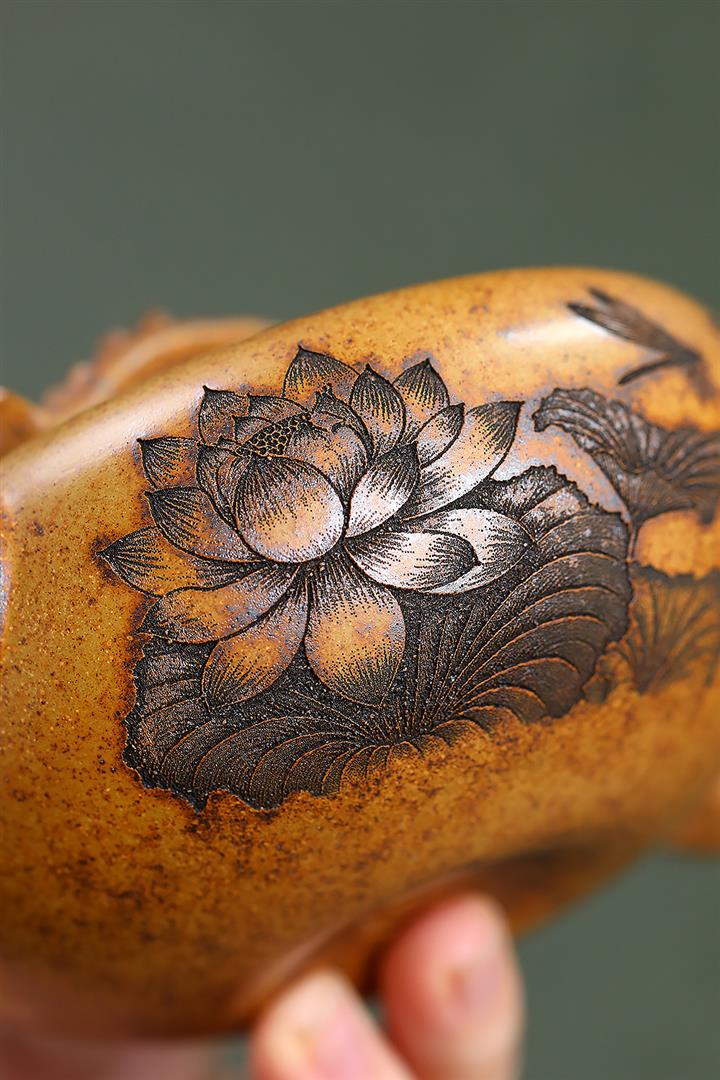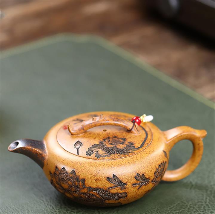 手工原礦段泥手刻華櫻紫砂壺200cc pot3451