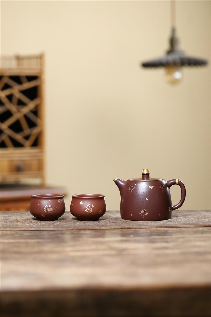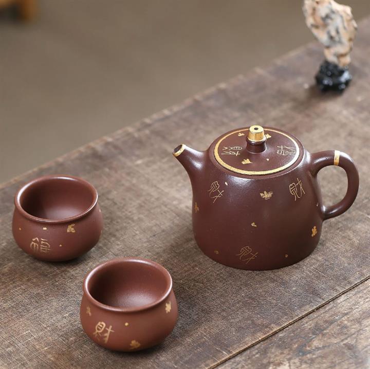 260cc原礦紫泥描金漢鐸壹壺兩杯茶壺POT9285