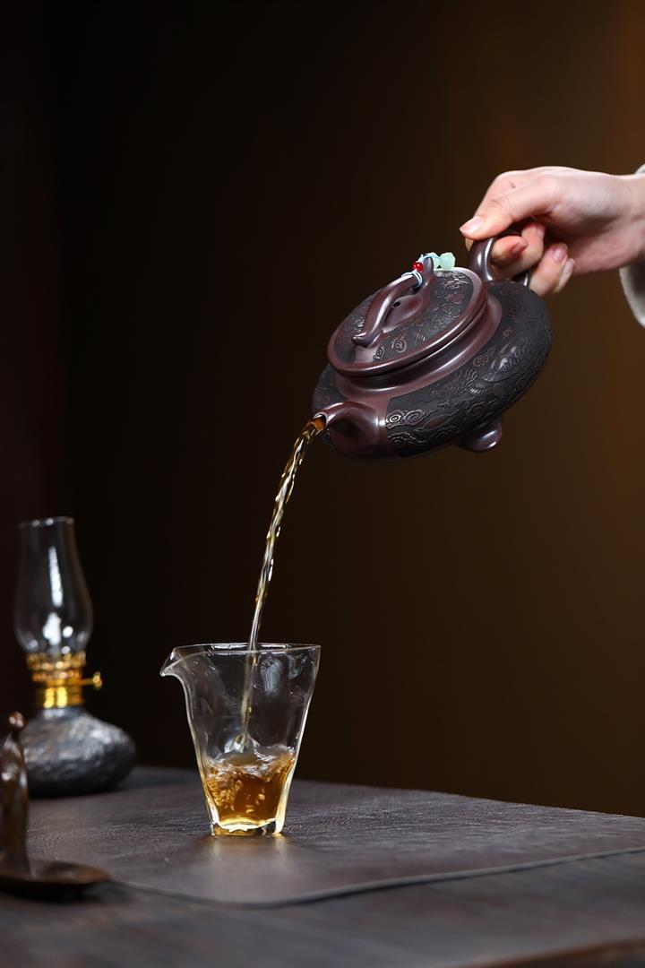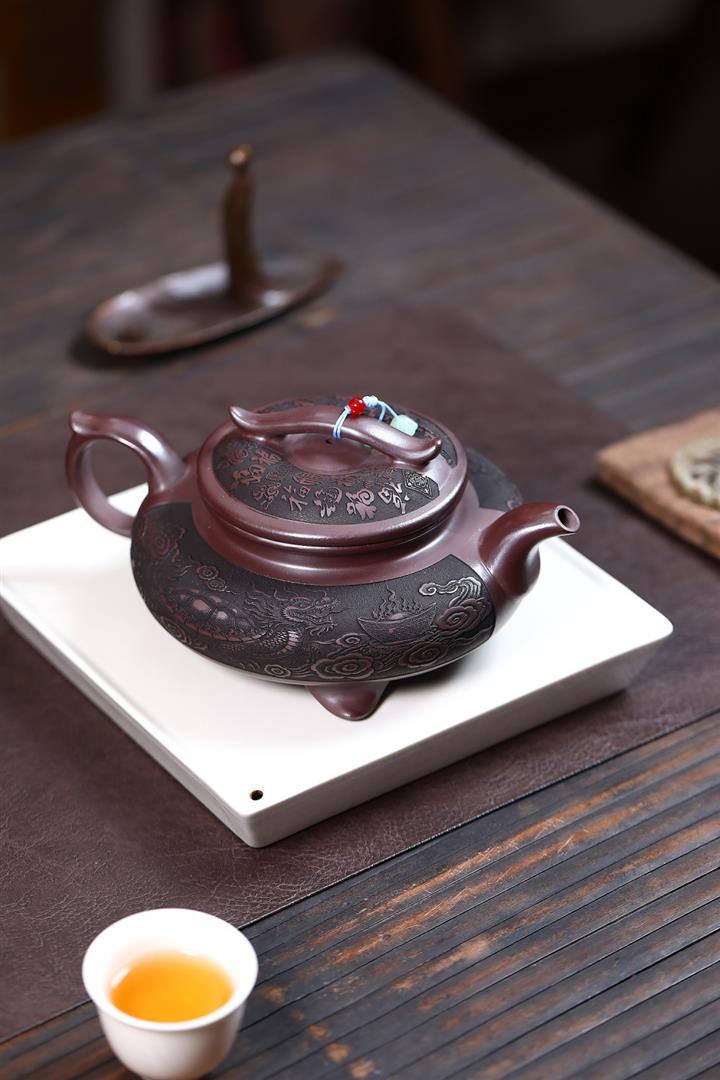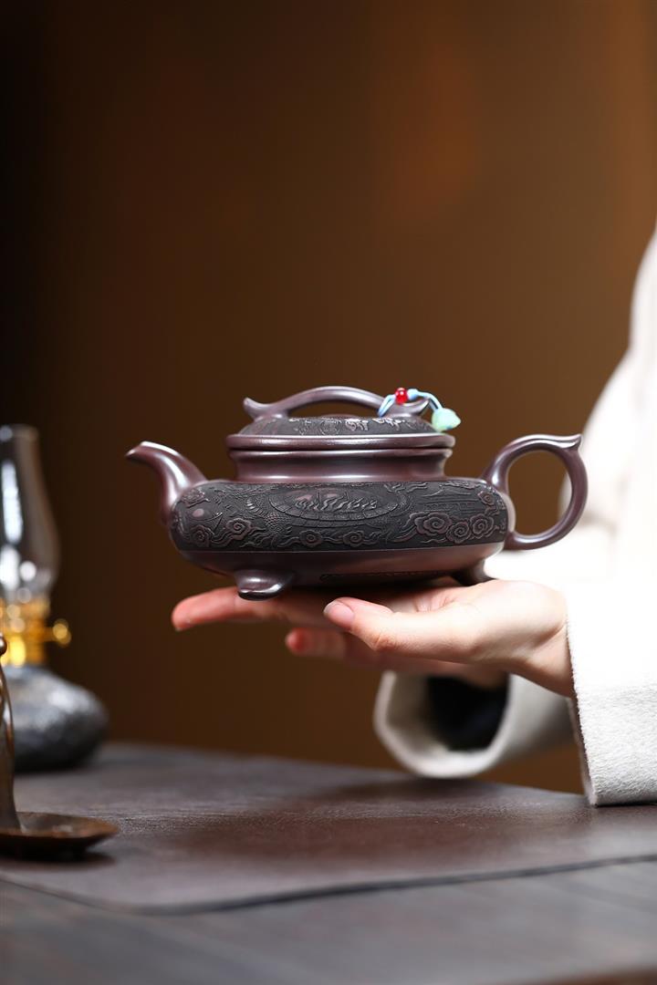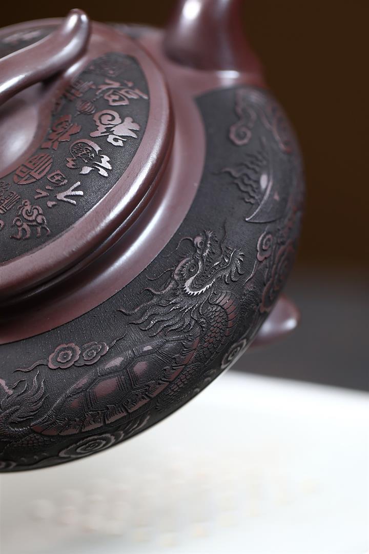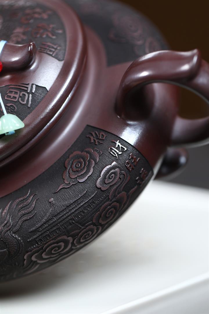 原礦紫泥刻山景雙線雲華茶壺POT6945