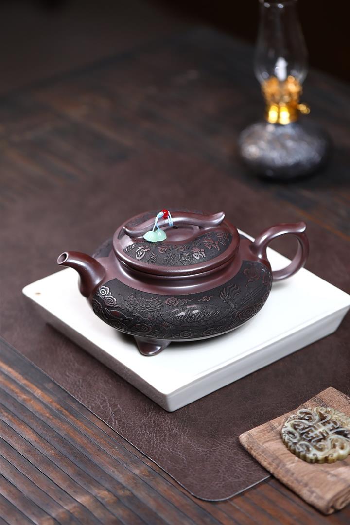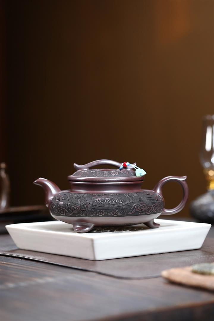 原礦紫泥描金三足爐鼎茶壺POT6940