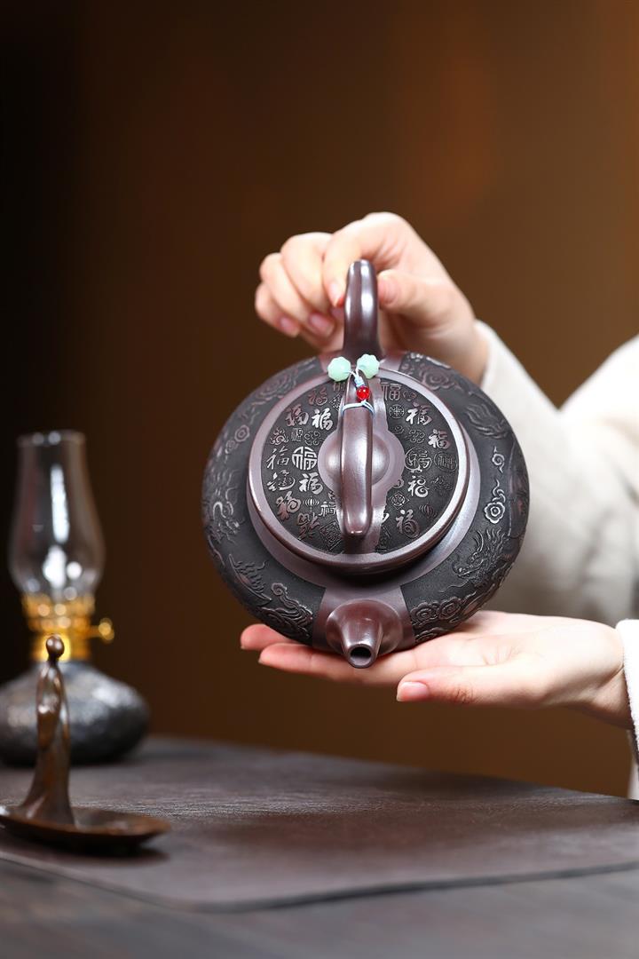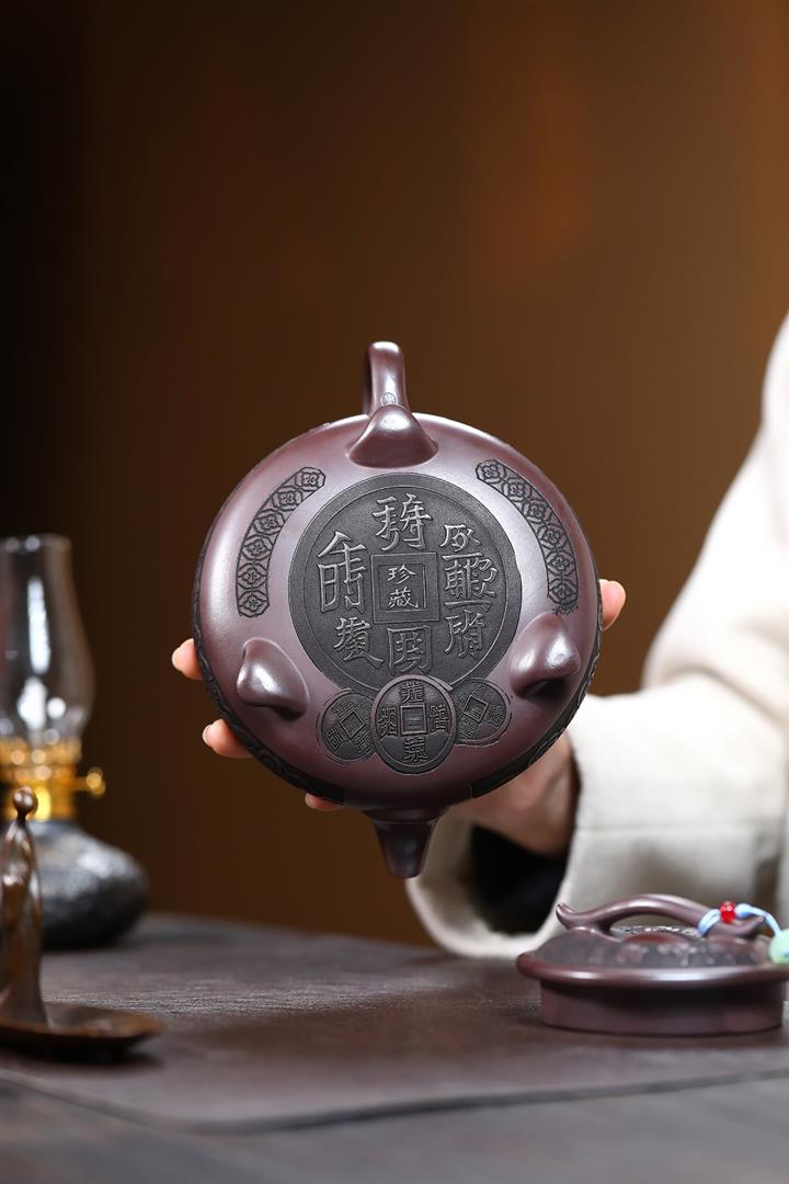 原礦古紅泥純手工八方招財納福茶壺POT6937