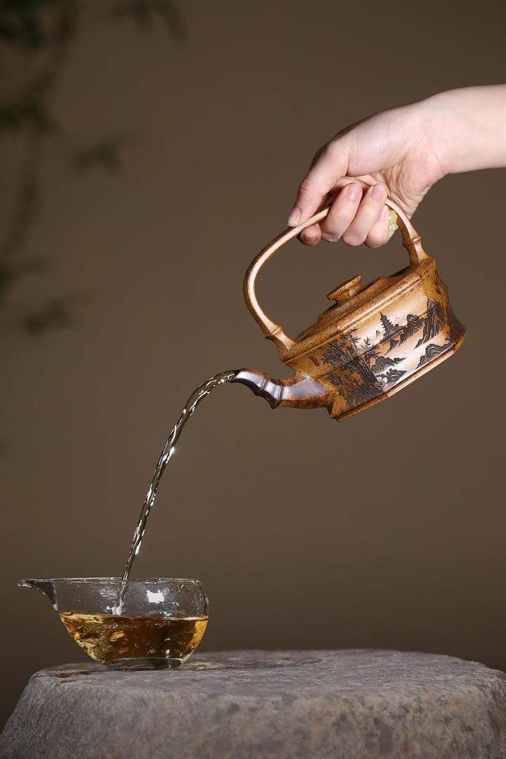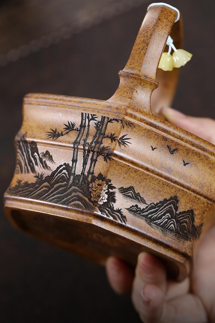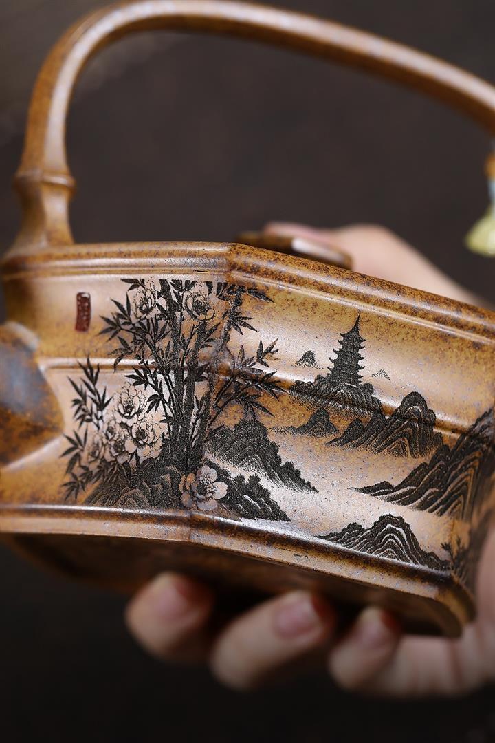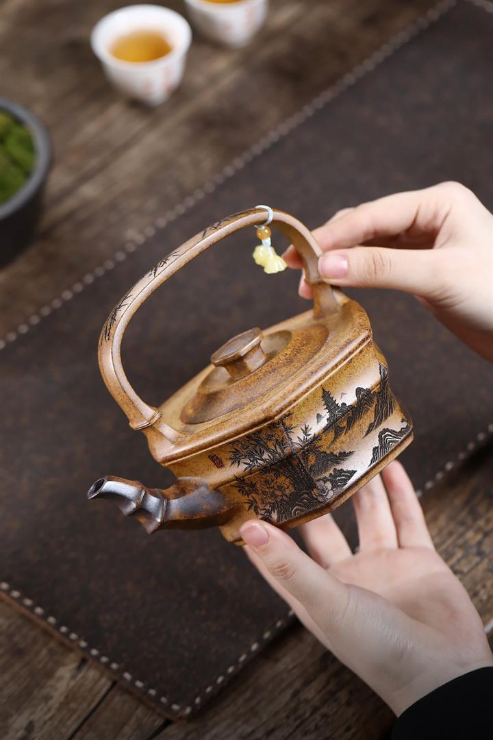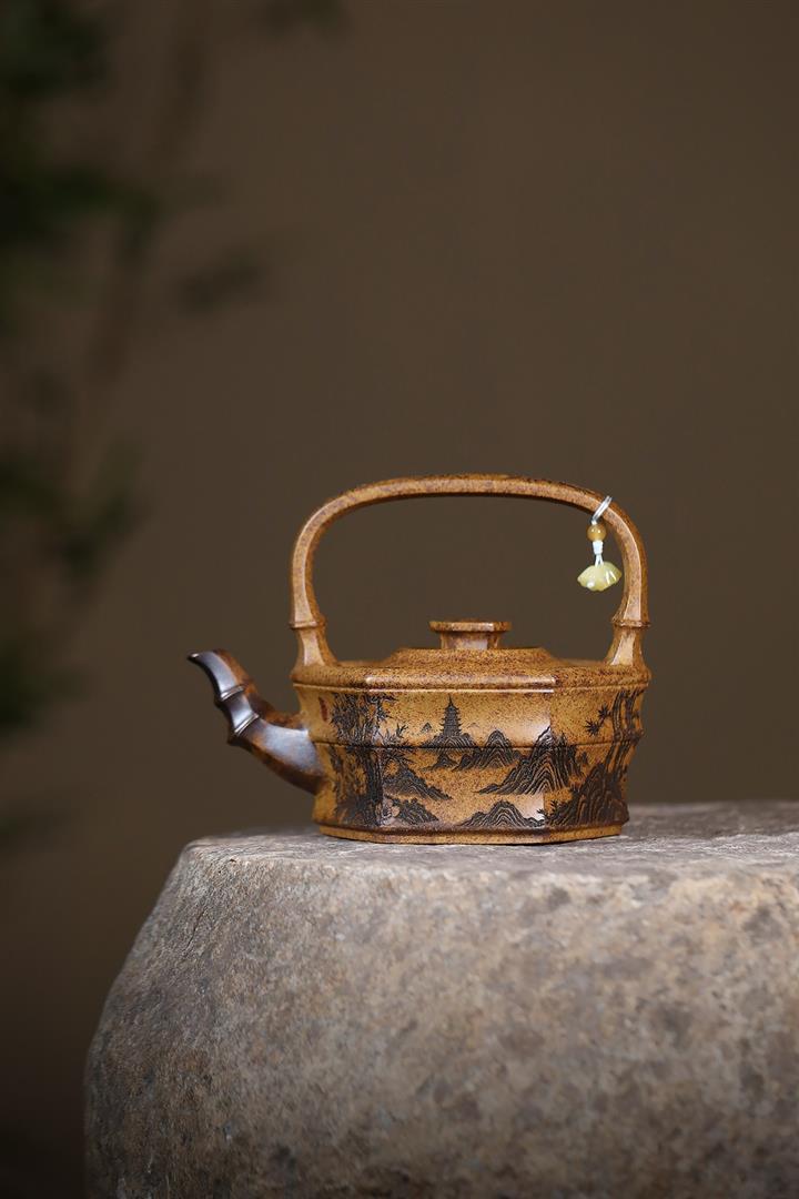 350cc原礦龍骨金砂山水提梁泡茶壺POT9300