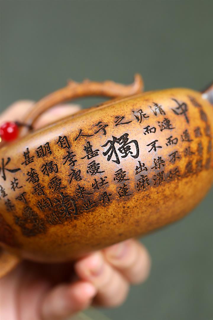 【作品介紹】此款壺形線條流暢,壺把,壺嘴,壺身壹氣呵成栩栩如生,是收藏把玩的好壺,泥料色澤古樸典雅,日久使用,漸露鋒芒,養成變化快,溫潤莊重,用其泡茶,使用的年代久,壺身就溫潤,泡出來的茶湯也就醇郁芳馨。