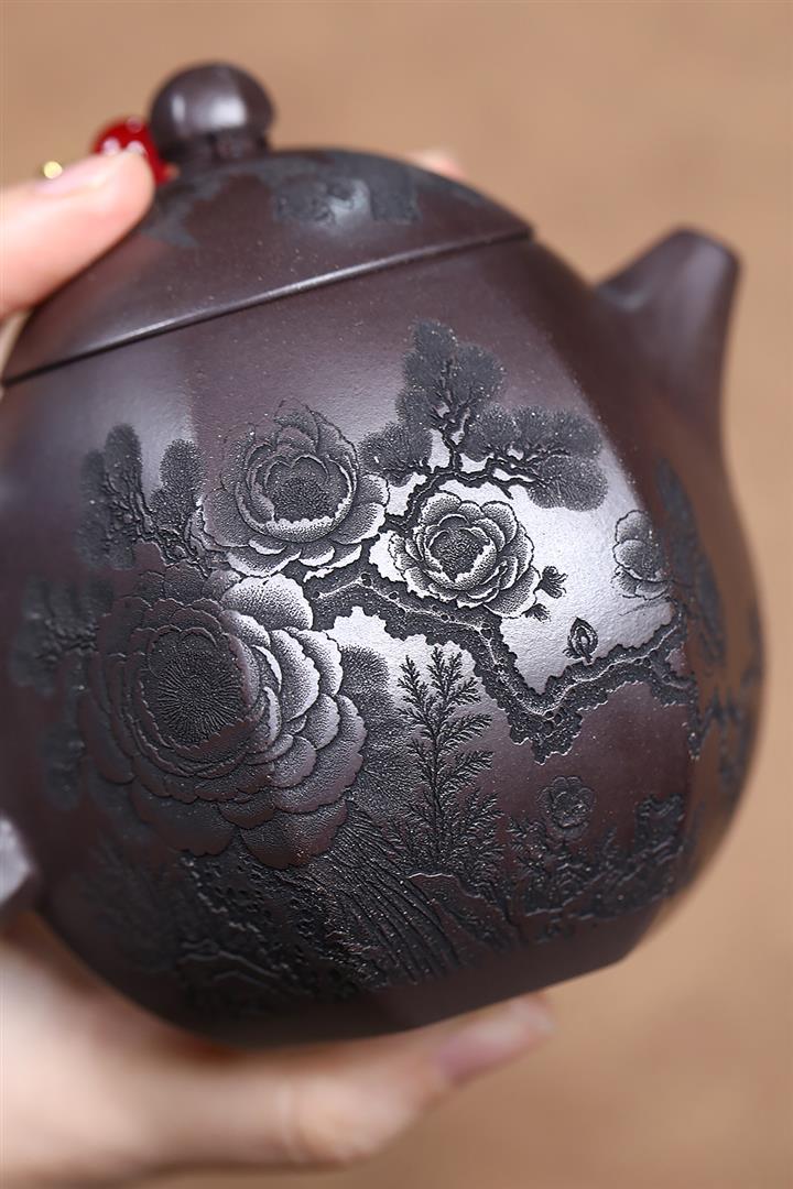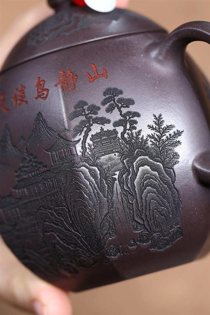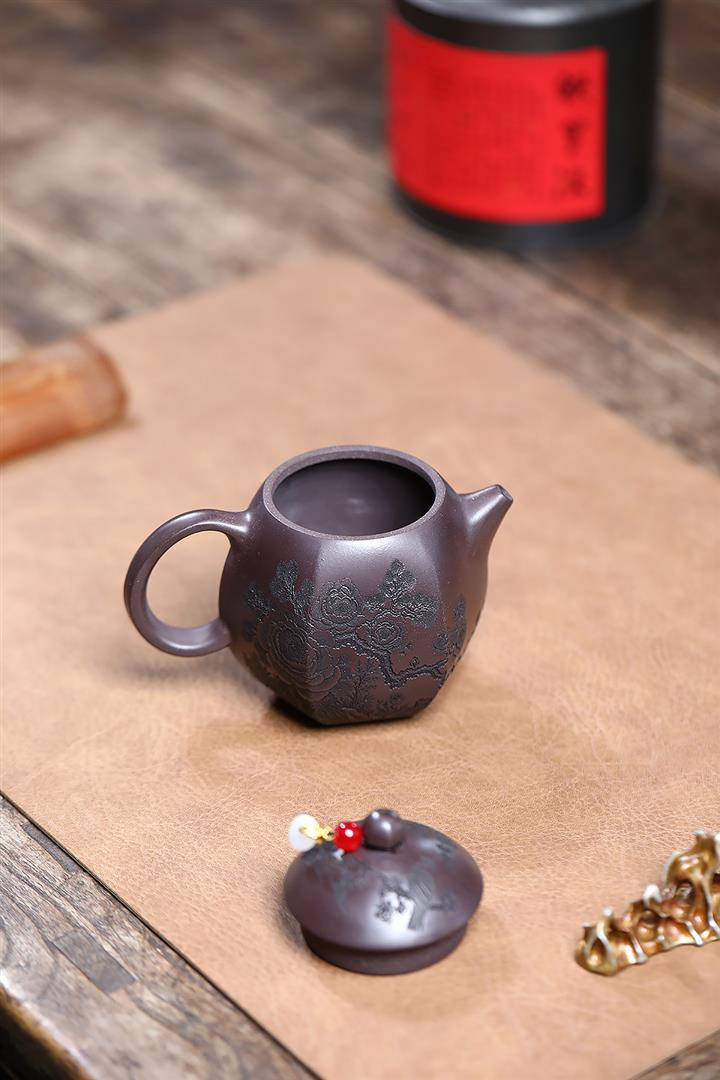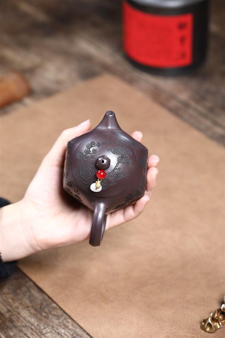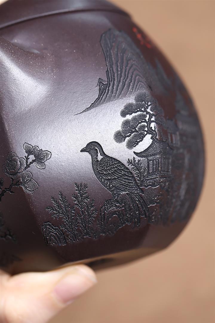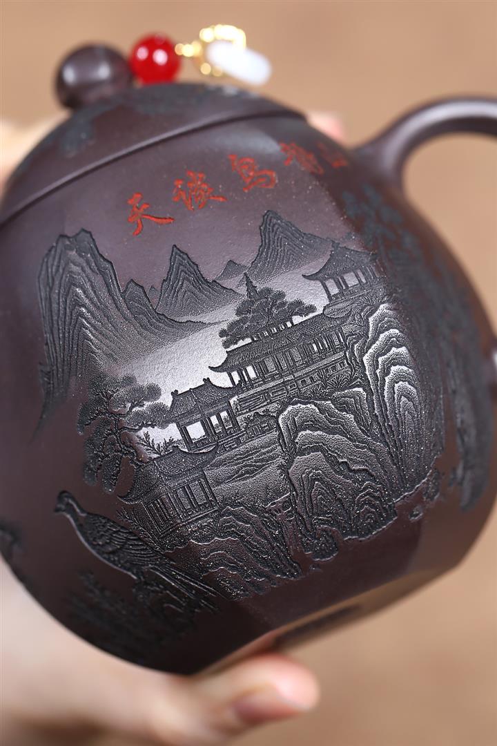 稀有紅龍血砂六方竹影紫砂壺POT5020
