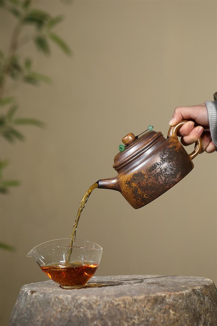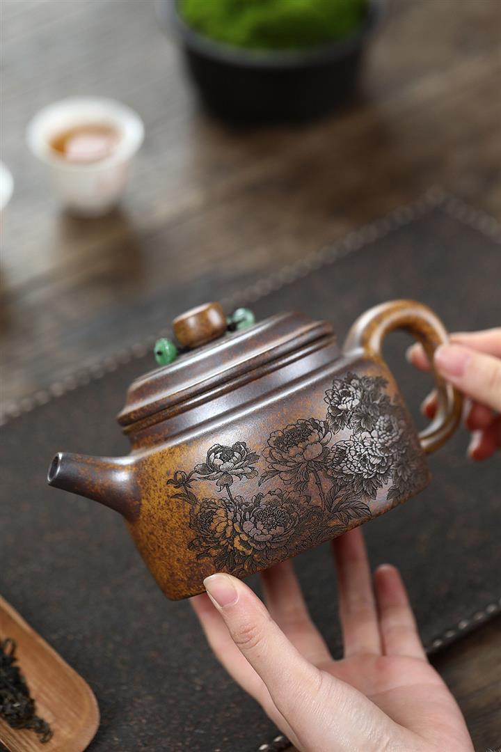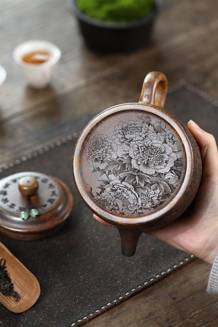 600cc原礦龍骨金砂柴燒牡丹德鐘泡茶壺POT9309