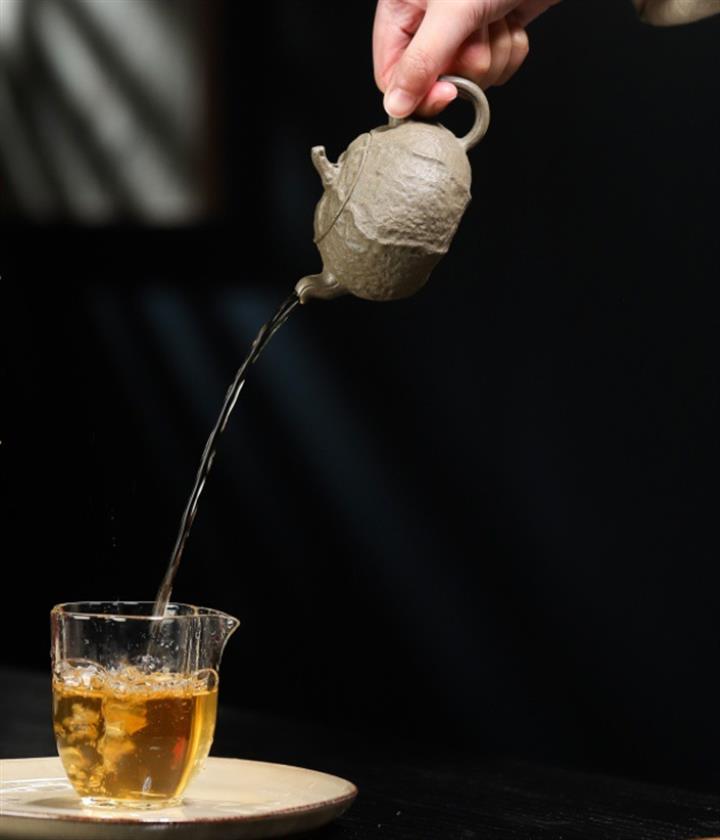 【泥料特點】砂土氣重,似淳實農民,日久使用,漸露鋒芒,養成變化,溫潤莊重。紫砂是壹種雙重氣孔結構的多孔性材質,氣孔微細,密度高。用紫砂壺沏茶,不失原味,且香不渙散,得茶之真香真味。紫砂使用越久,壺身色澤越發光亮照人,氣韻溫雅。紫砂壺長久使用器身會因撫摸擦拭,變得越發溫潤光澤。
