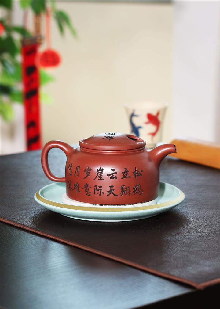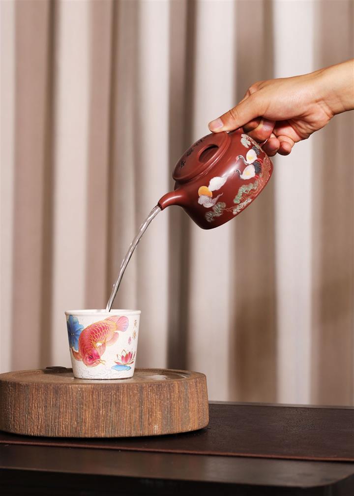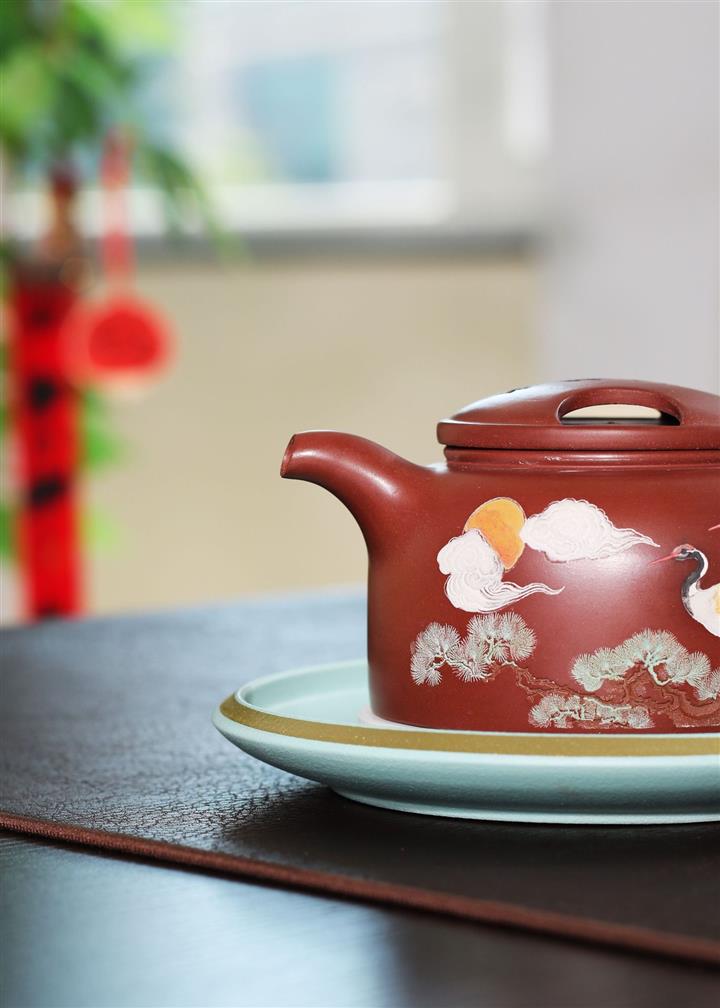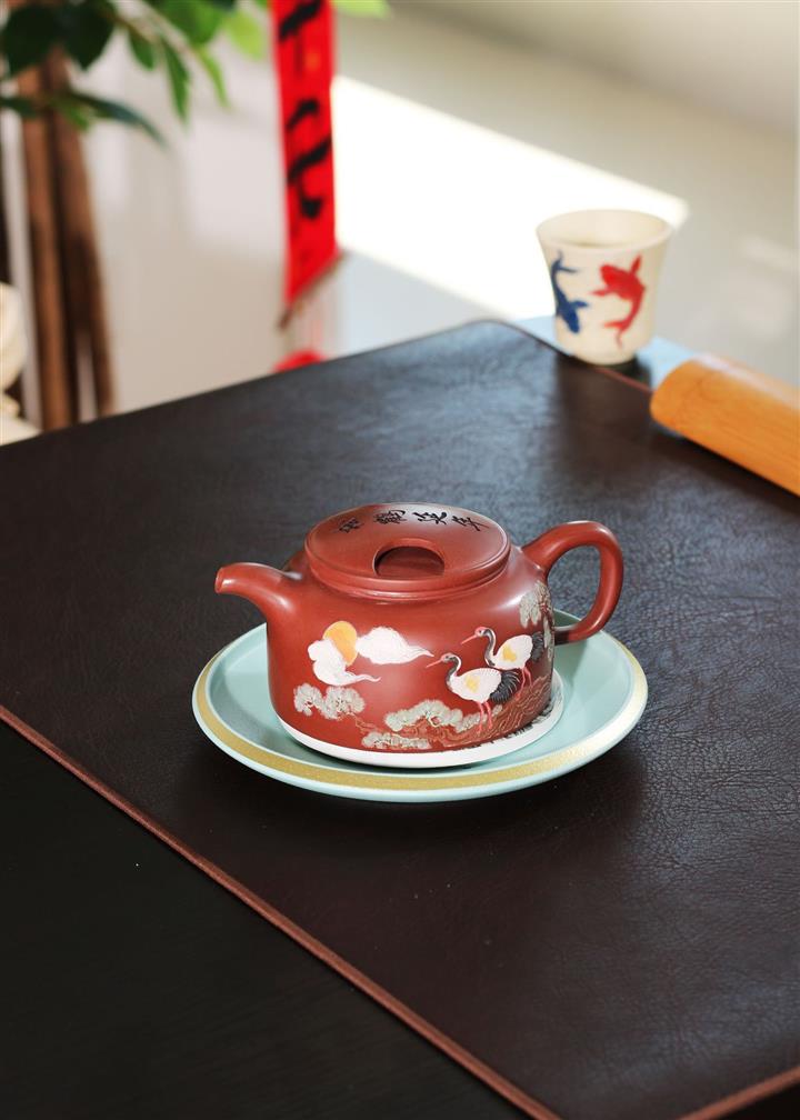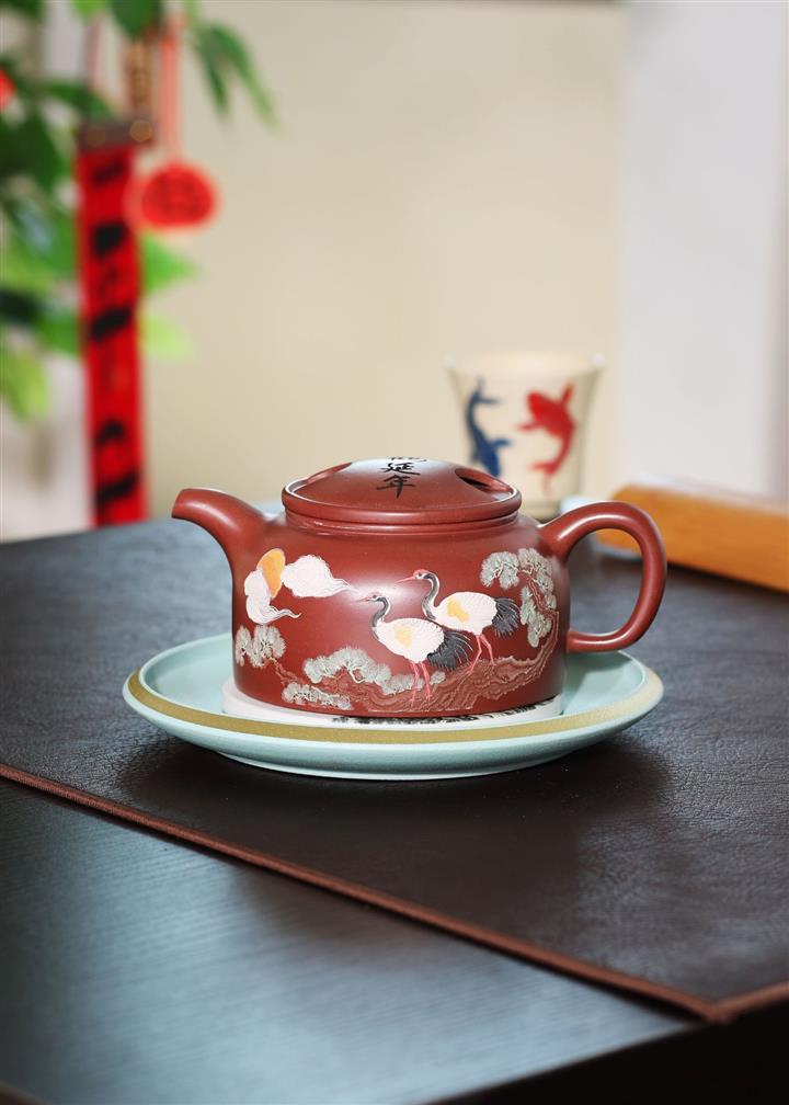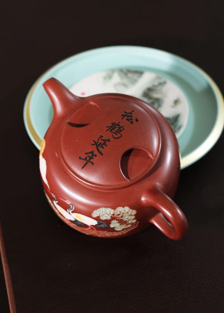 300cc原礦大紅袍松鶴延年牛蓋蓮子泡茶壺POT9399
