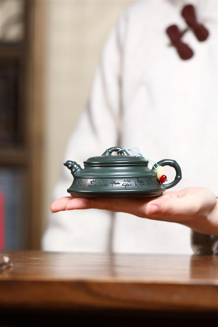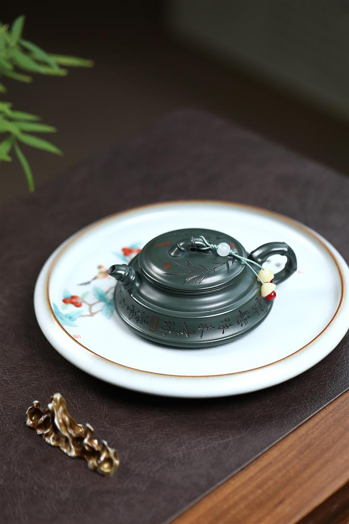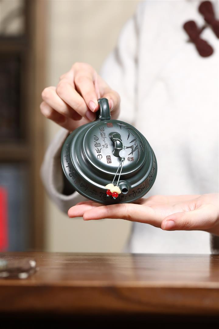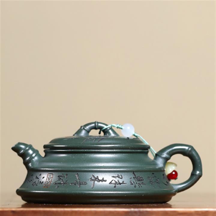 130cc原礦翡翠綠泥雙線竹段泡茶壺POT9400