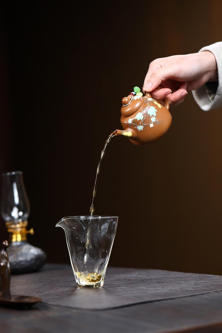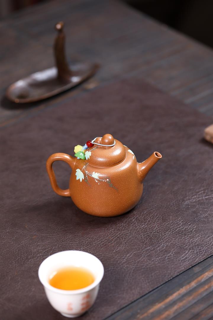 【泥料特點】砂土氣重,似淳實農民,日久使用,漸露鋒芒,養成變化,溫潤莊重。紫砂是壹種雙重氣孔結構的多孔性材質,氣孔微細,密度高。用紫砂壺沏茶,不失原味,且香不渙散,得茶之真香真味。紫砂使用越久,壺身色澤越發光亮照人,氣韻溫雅。紫砂壺長久使用器身會因撫摸擦拭,變得越發溫潤光澤。