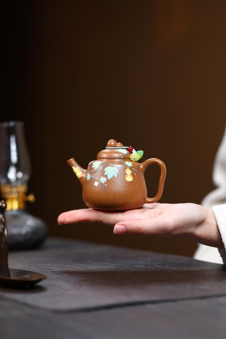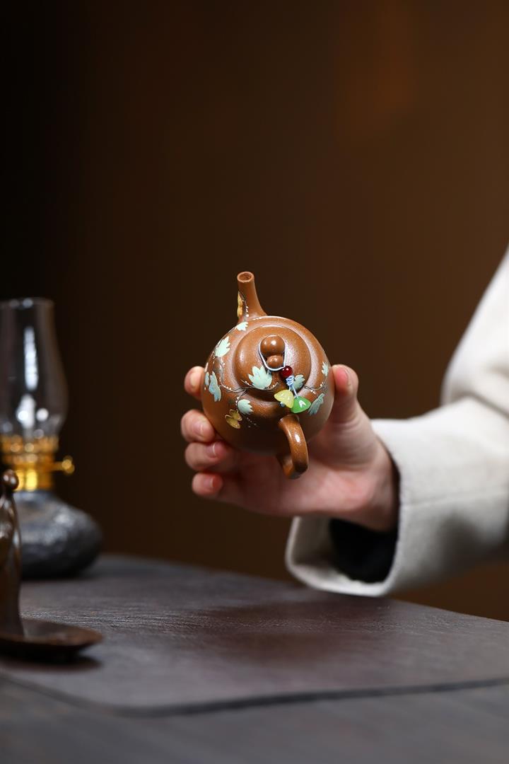 140cc原礦金降坡楓葉葫蘆泡茶壺POT9403