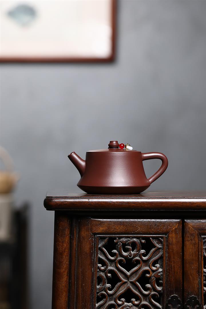 【作品介紹】此款壺形線條流暢,壺把,壺嘴,壺身壹氣呵成栩栩如生,是收藏把玩的好壺,泥料色澤古樸典雅,日久使用,漸露鋒芒,養成變化快,溫潤莊重,用其泡茶,使用的年代久,壺身就溫潤,泡出來的茶湯也就醇郁芳馨。