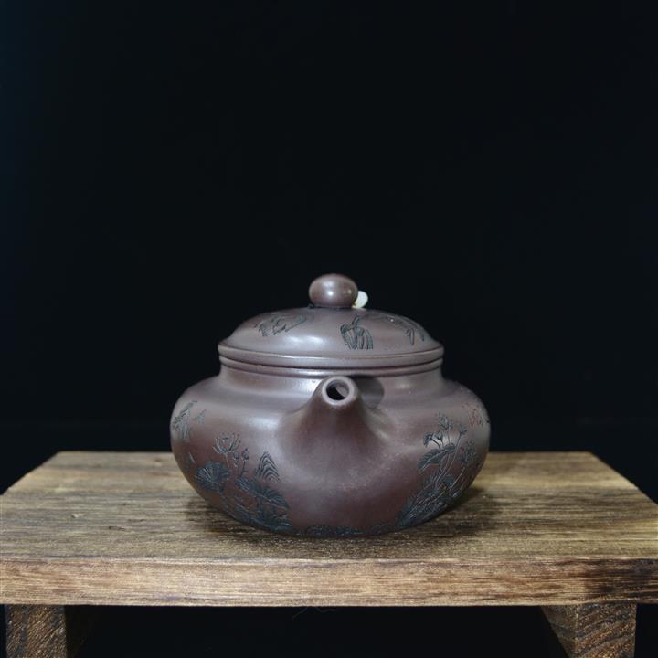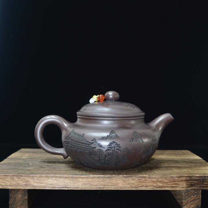 340cc原礦紫泥刻繪山水仿古泡茶壺POT9444