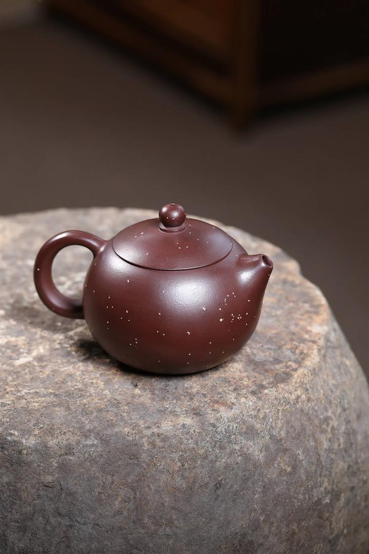 【泥料特點】砂土氣重,似淳實農民,日久使用,漸露鋒芒,養成變化,溫潤莊重。紫砂是壹種雙重氣孔結構的多孔性材質,氣孔微細,密度高。用紫砂壺沏茶,不失原味,且香不渙散,得茶之真香真味。紫砂使用越久,壺身色澤越發光亮照人,氣韻溫雅。紫砂壺長久使用器身會因撫摸擦拭,變得越發溫潤光澤。