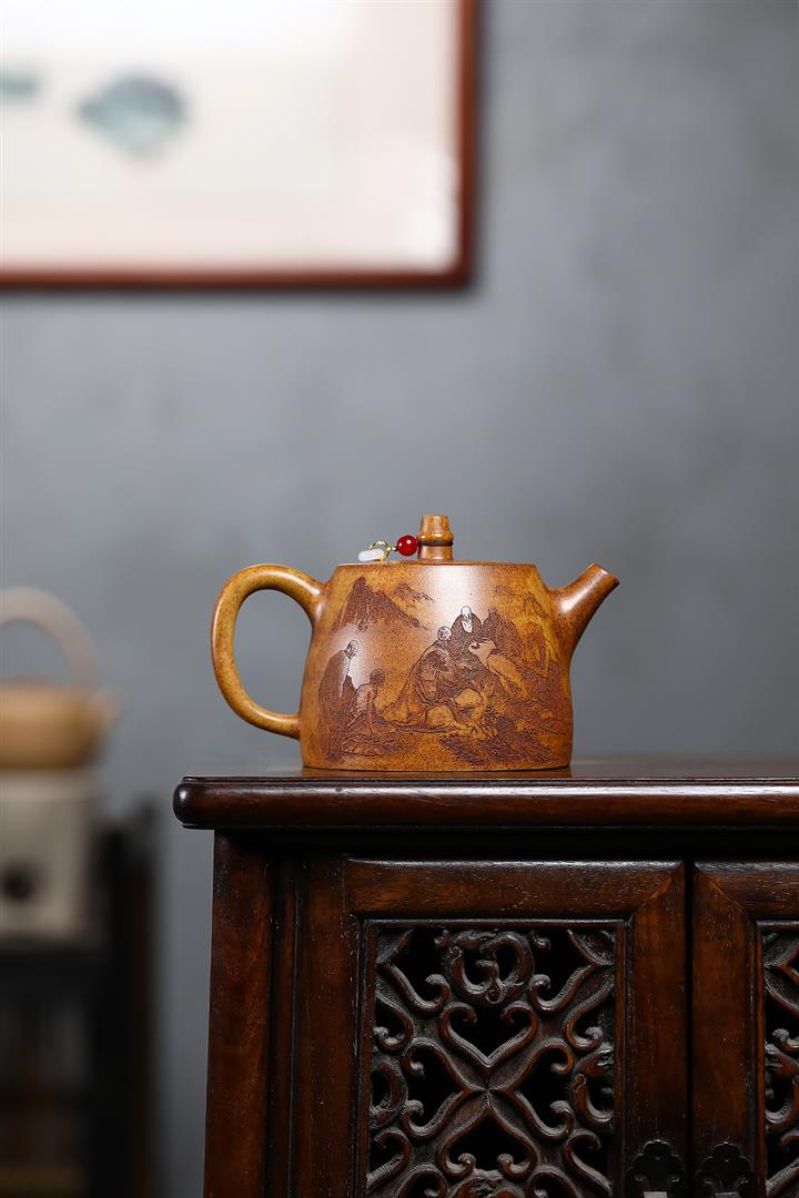 【作品介紹】此款壺形線條流暢,壺把,壺嘴,壺身壹氣呵成栩栩如生,是收藏把玩的好壺,泥料色澤古樸典雅,日久使用,漸露鋒芒,養成變化快,溫潤莊重,用其泡茶,使用的年代久,壺身就溫潤,泡出來的茶湯也就醇郁芳馨。