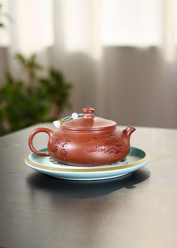 【泥料特點】砂土氣重,似淳實農民,日久使用,漸露鋒芒,養成變化,溫潤莊重。紫砂是壹種雙重氣孔結構的多孔性材質,氣孔微細,密度高。用紫砂壺沏茶,不失原味,且香不渙散,得茶之真香真味。紫砂使用越久,壺身色澤越發光亮照人,氣韻溫雅。紫砂壺長久使用器身會因撫摸擦拭,變得越發溫潤光澤。