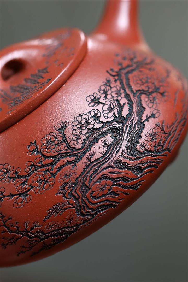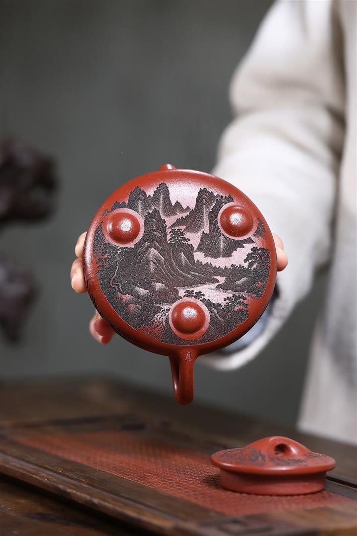 紫砂壺原礦朱泥手刻泥繪雙色荷趣石瓢壺套裝茶具pot3843