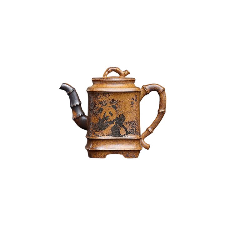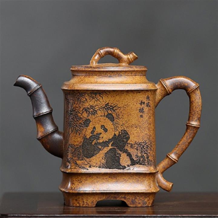 330cc原礦高溫段泥熊貓四方竹節泡茶壺POT9491