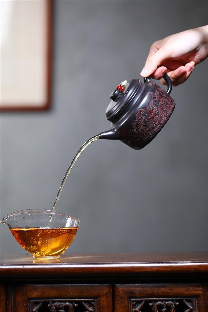 【作品介紹】此款壺形線條流暢,壺把,壺嘴,壺身壹氣呵成栩栩如生,是收藏把玩的好壺,泥料色澤古樸典雅,日久使用,漸露鋒芒,養成變化快,溫潤莊重,用其泡茶,使用的年代久,壺身就溫潤,泡出來的茶湯也就醇郁芳馨。