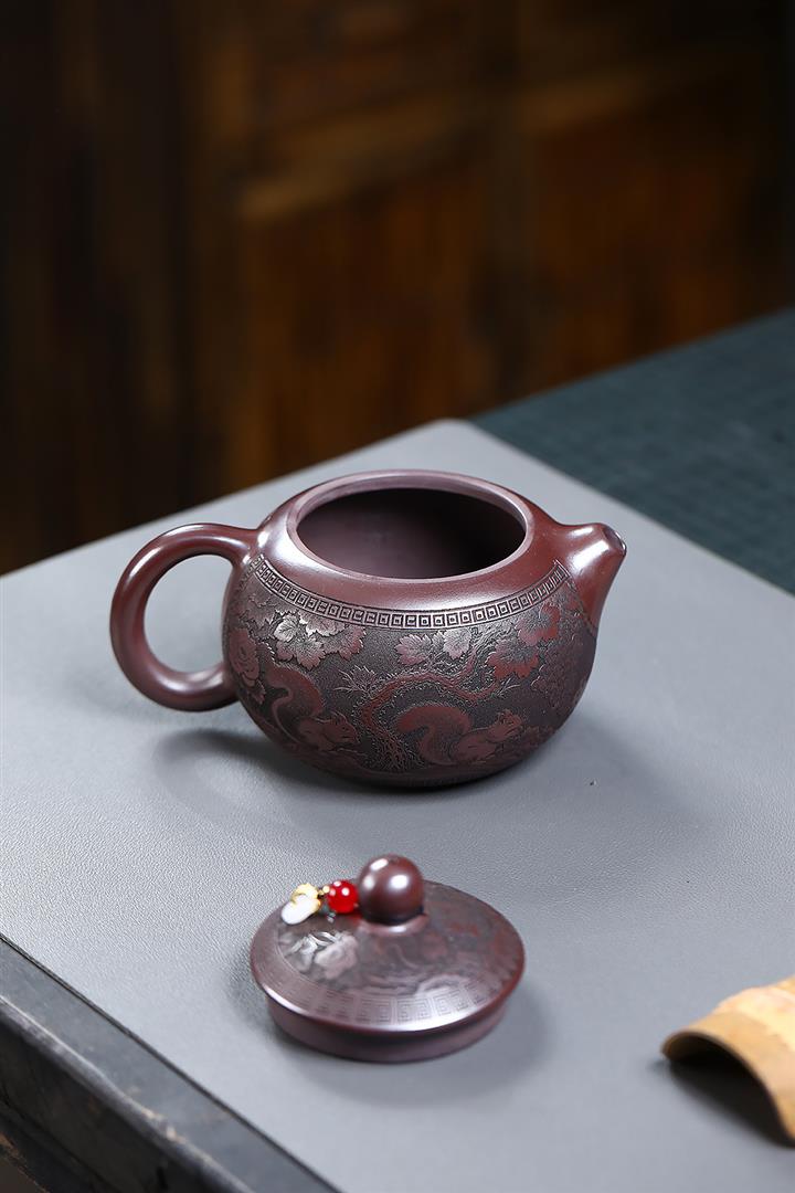 【作品介紹】此款壺形線條流暢,壺把,壺嘴,壺身壹氣呵成栩栩如生,是收藏把玩的好壺,泥料色澤古樸典雅,日久使用,漸露鋒芒,養成變化快,溫潤莊重,用其泡茶,使用的年代久,壺身就溫潤,泡出來的茶湯也就醇郁芳馨。