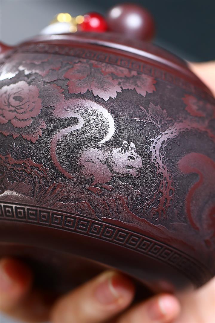 380cc原礦石紅松鼠葡萄西施泡茶壺POT9494