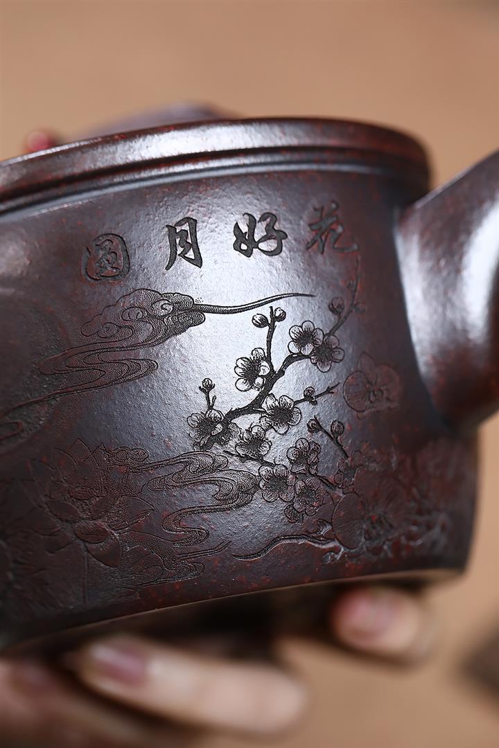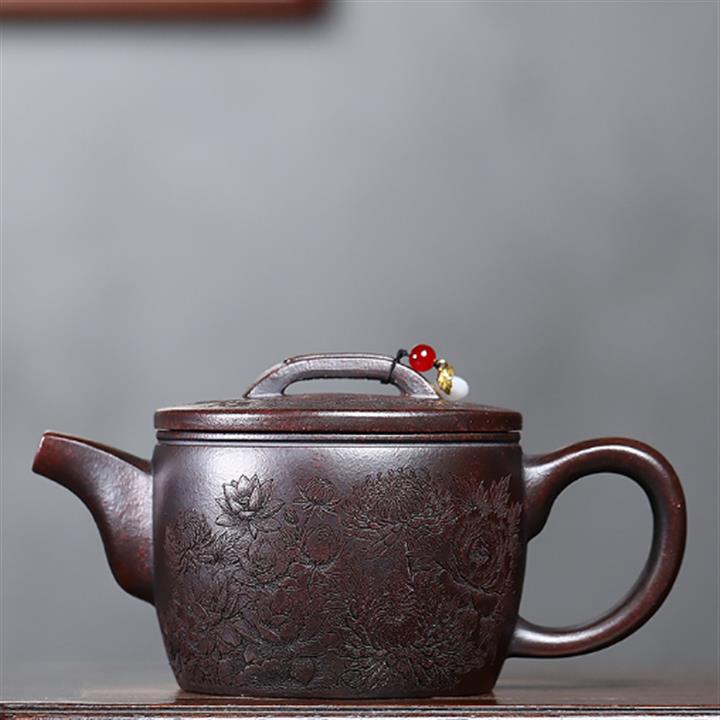 550cc原礦鐵血紅砂花好月圓漢瓦泡茶壺POT9496