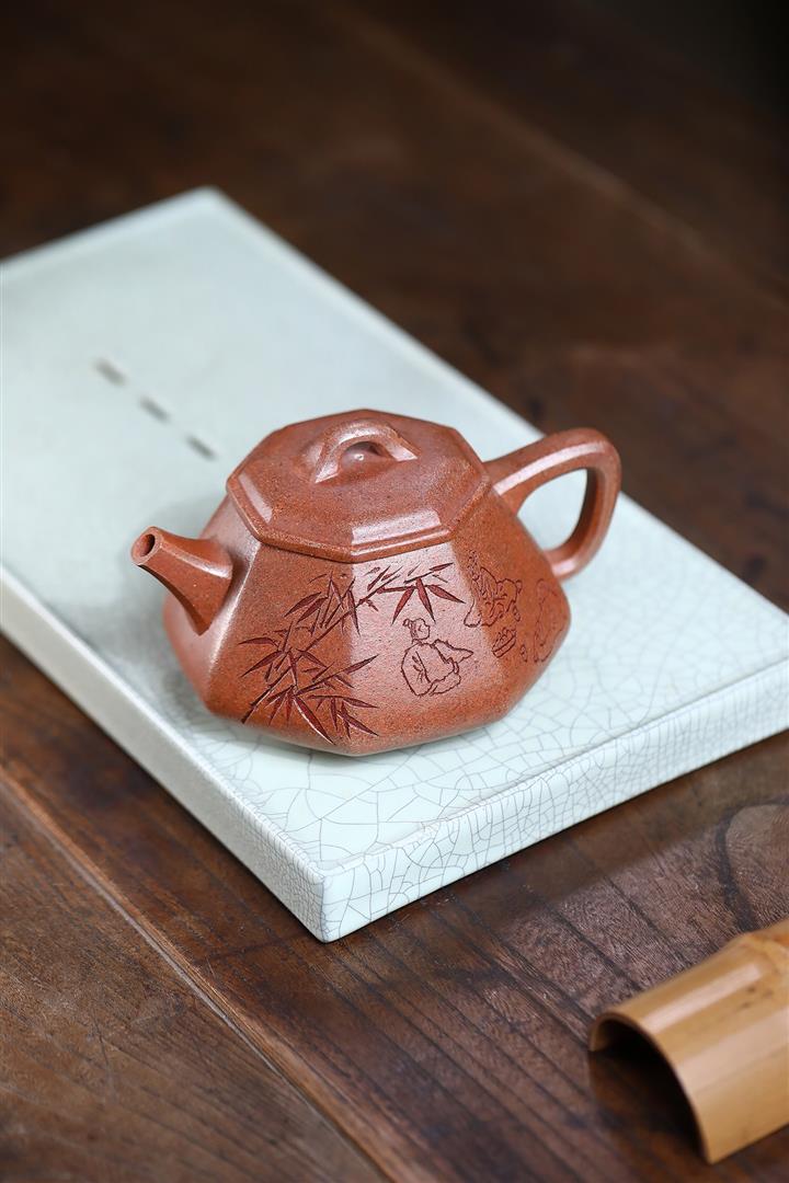 【作品介紹】此款壺形線條流暢,壺把,壺嘴,壺身壹氣呵成栩栩如生,是收藏把玩的好壺,泥料色澤古樸典雅,日久使用,漸露鋒芒,養成變化快,溫潤莊重,用其泡茶,使用的年代久,壺身就溫潤,泡出來的茶湯也就醇郁芳馨。