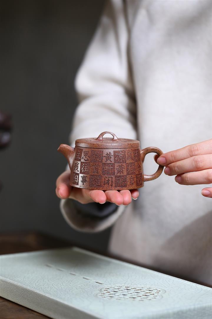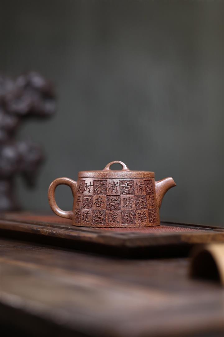 150cc原礦沈香泥柴燒刻字漢瓦泡茶壺POT9502