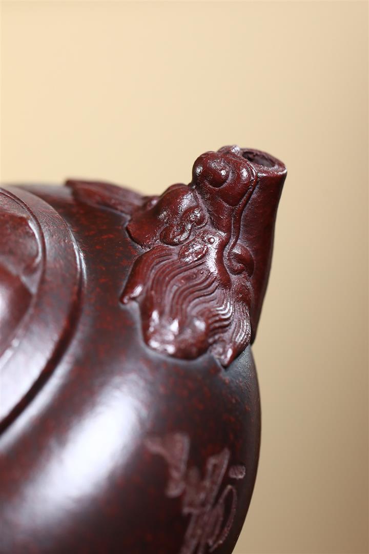 宜興朱泥紫砂工藝仿古手把壺