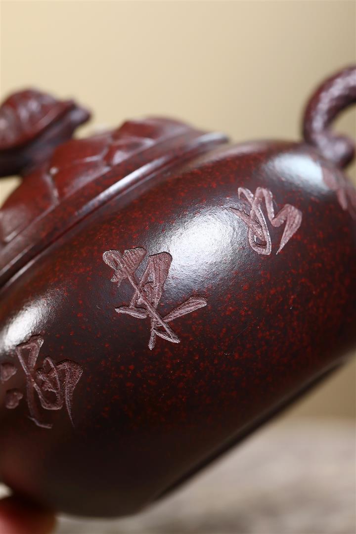 做舊朱泥竹韻擺飾紫砂壺汪寅仙底章