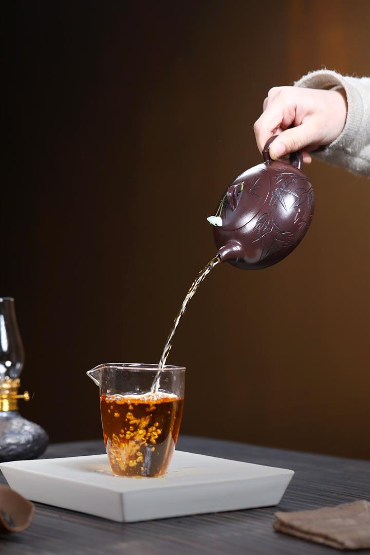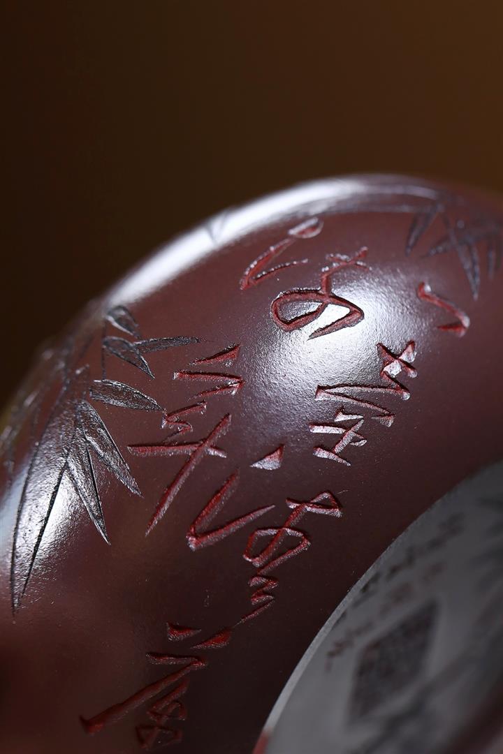 原礦紫泥刻繪金鱗魚罩茶壺POT7027