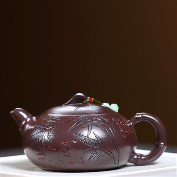 300cc原礦紫朱泥勁竹圓瓦泡茶壺POT9521