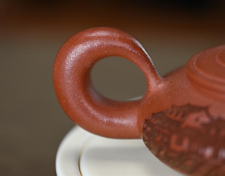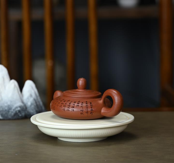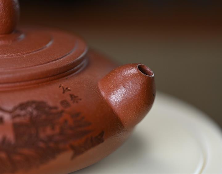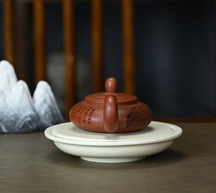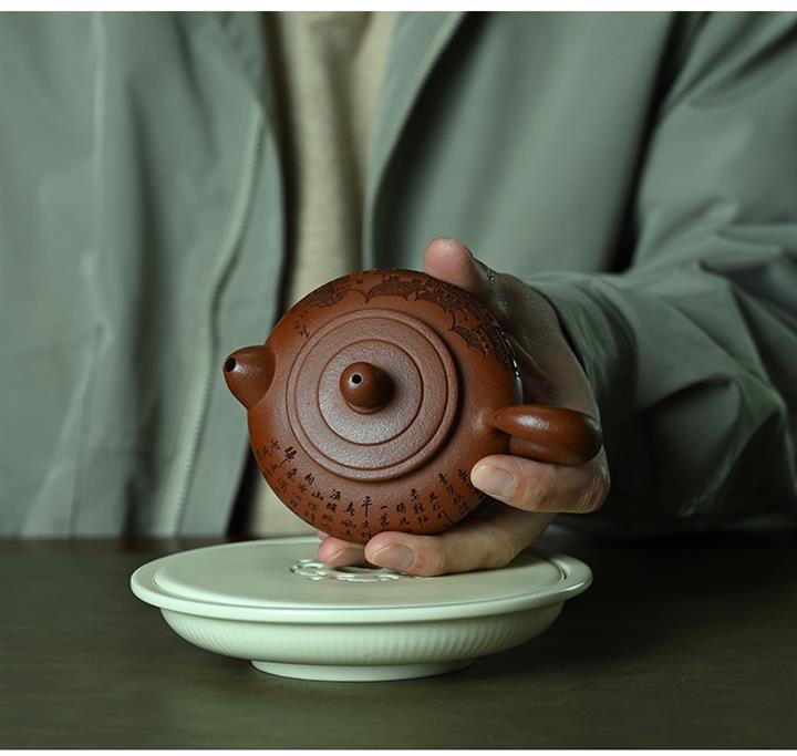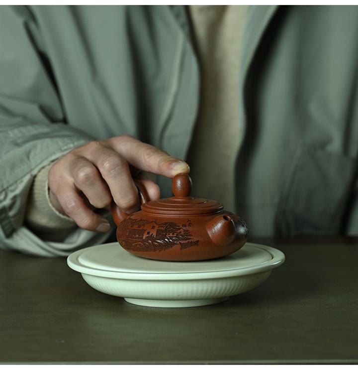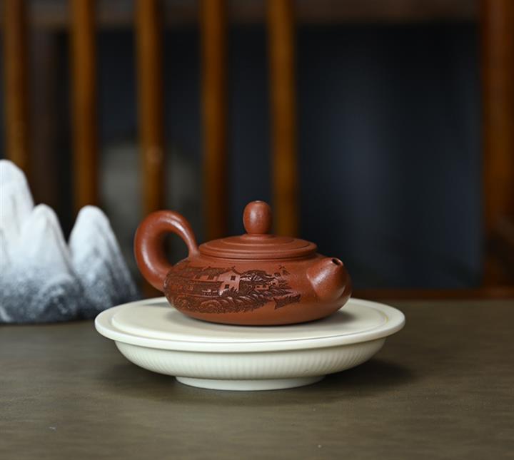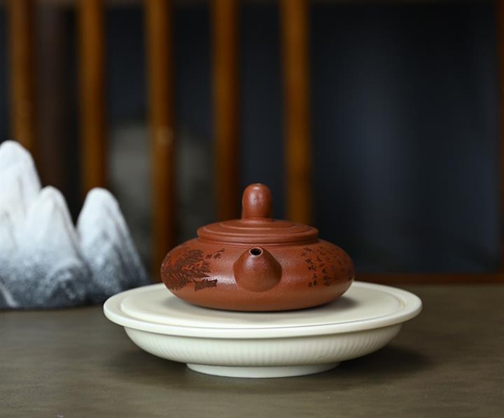 190cc原礦綠泥刻繪山水扁晨泡茶壺POT9548
